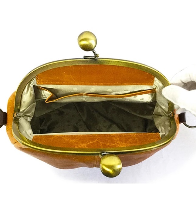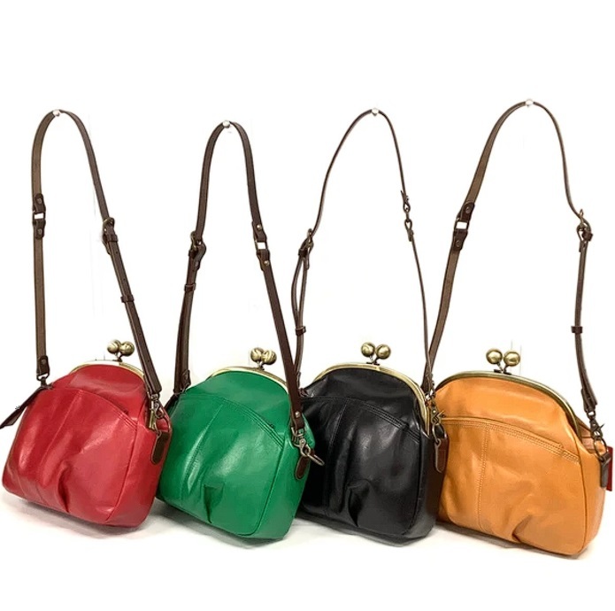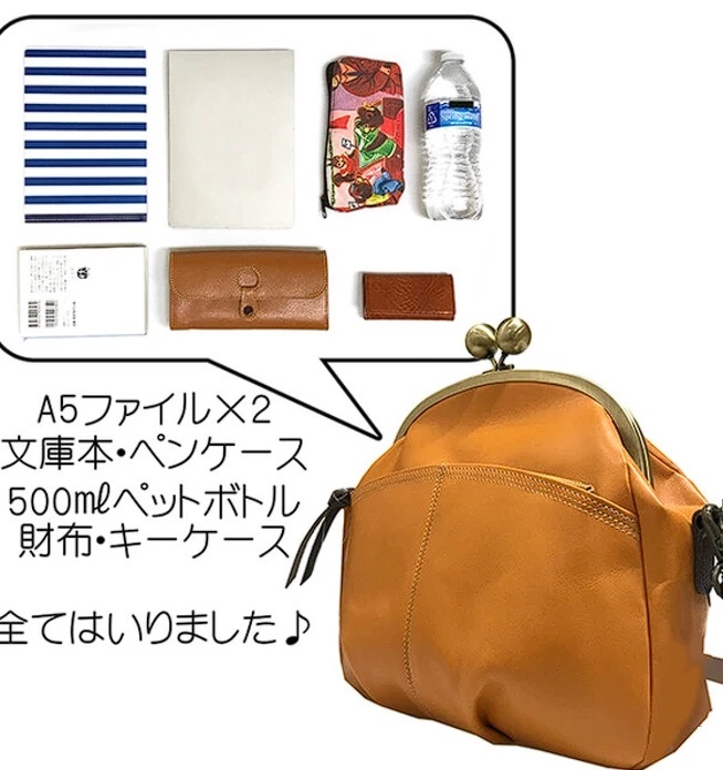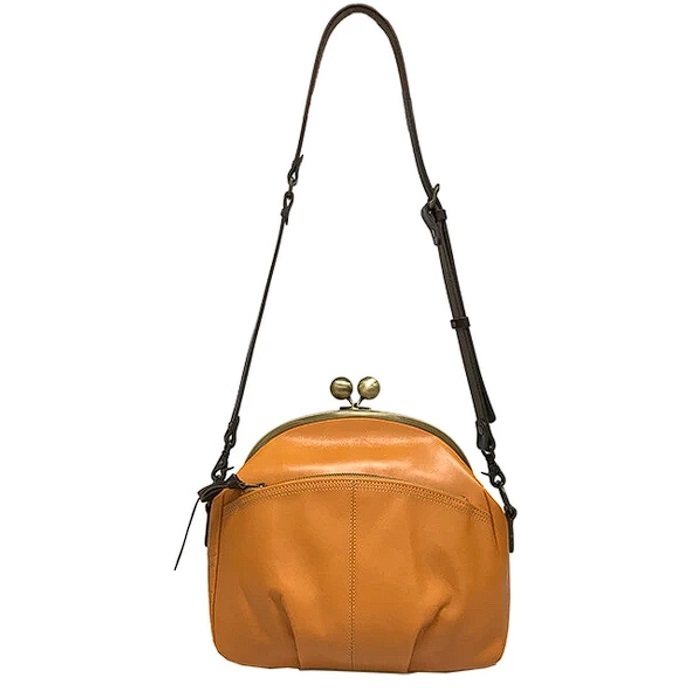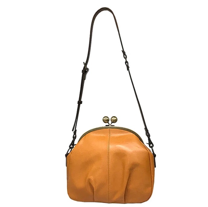 | ★人気NO,1★【日本製レザーバッグ】キューズ 本革×がま口ショルダーバッグ キュートなテイスト 可愛い キャメル | |