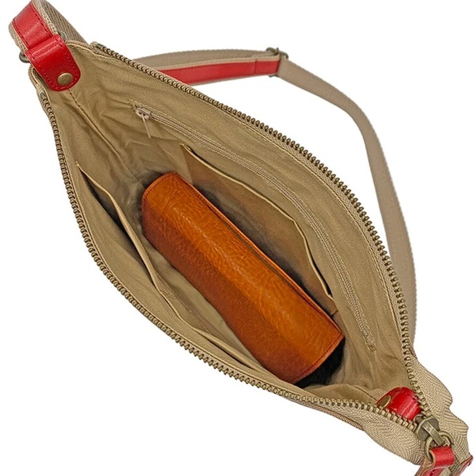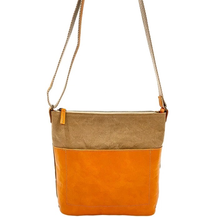 | 【日本製帆布×牛革バッグ】クロスト 縦型ショルダーバッグ オールシーズン 軽い 高い耐久性 薄マチ 可愛い オススメ キャメル | |