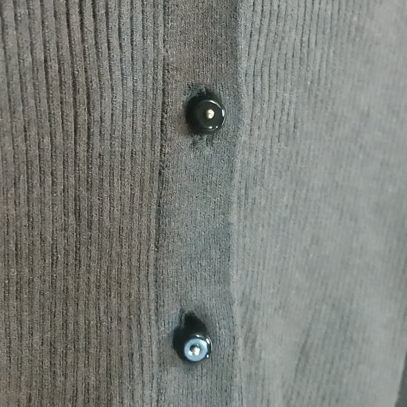 伸びるニット素材!丈短め、くるんとしたボタンがポイント!
