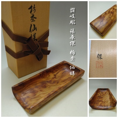 【S-129】讃岐彫 篠原 傑 作 栃杢 仙媒 茶合 共箱付 煎茶道具 | |||