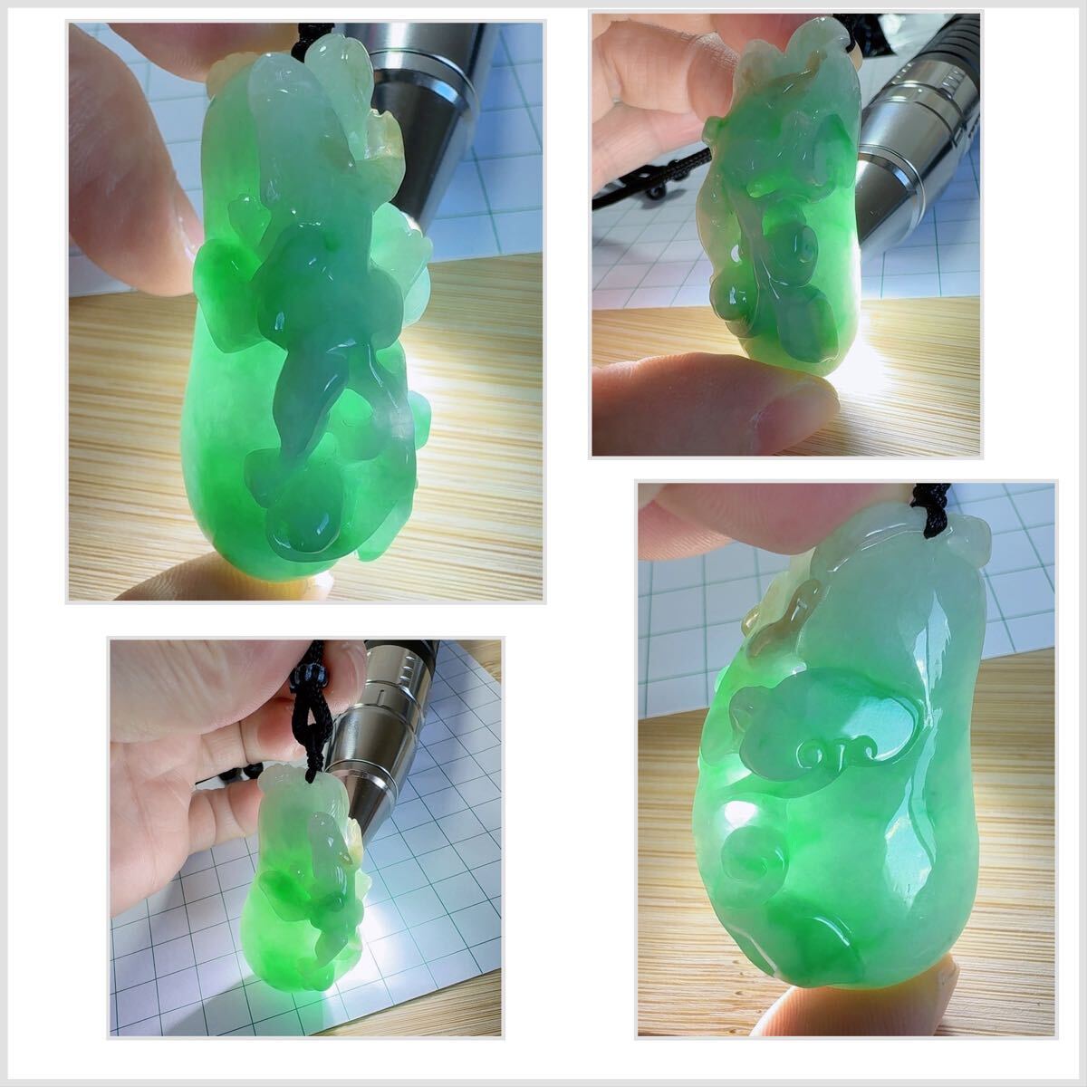 天然翡翠には一点一点に個性があります,天然石特有のヒビ、欠け、内包物などある場合がございます.