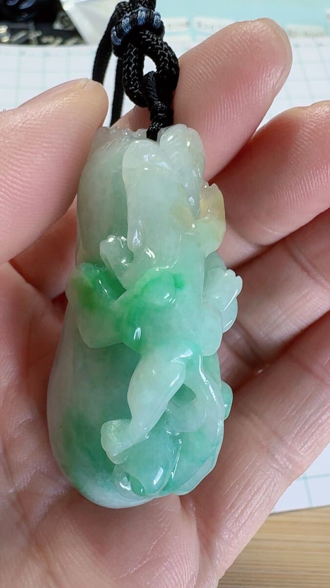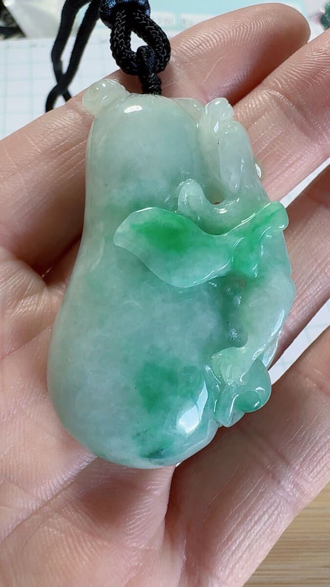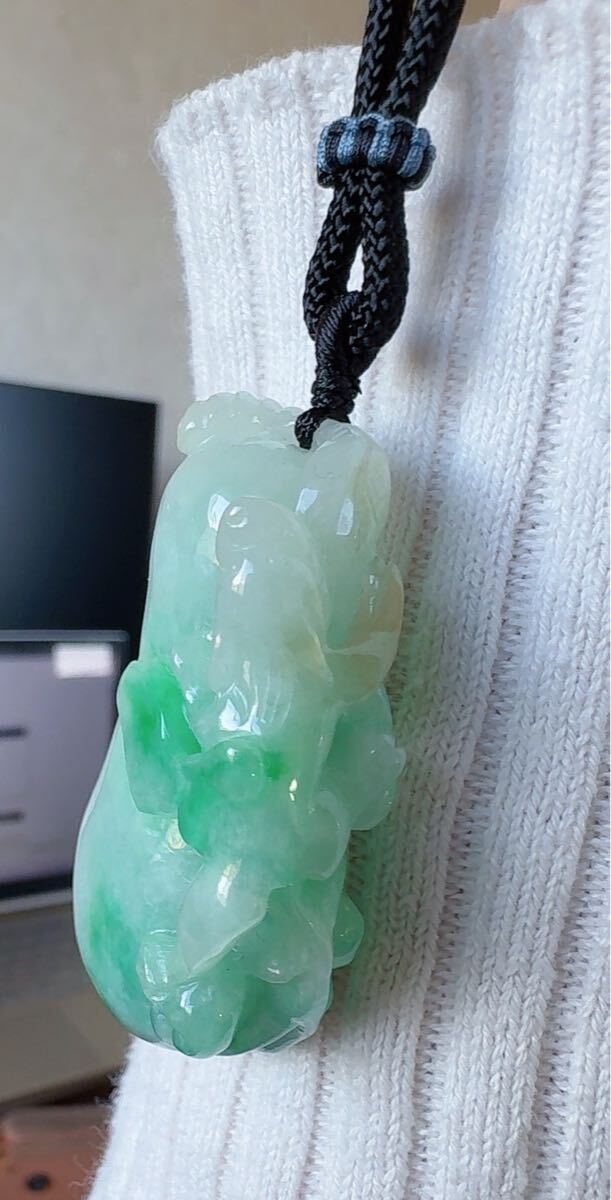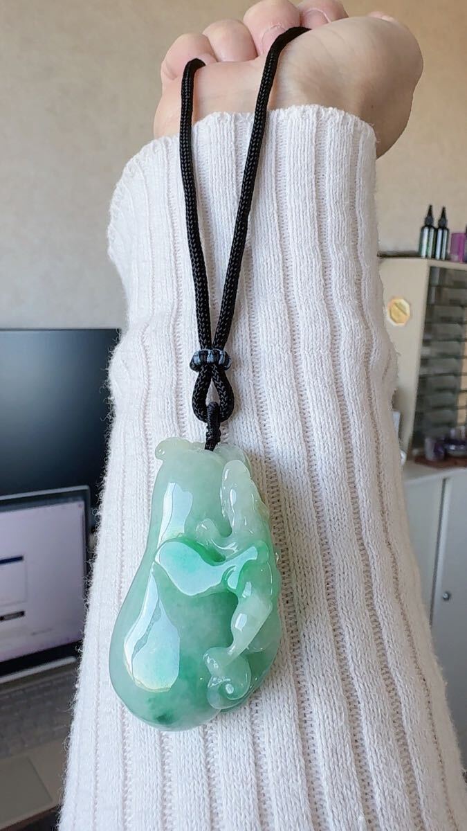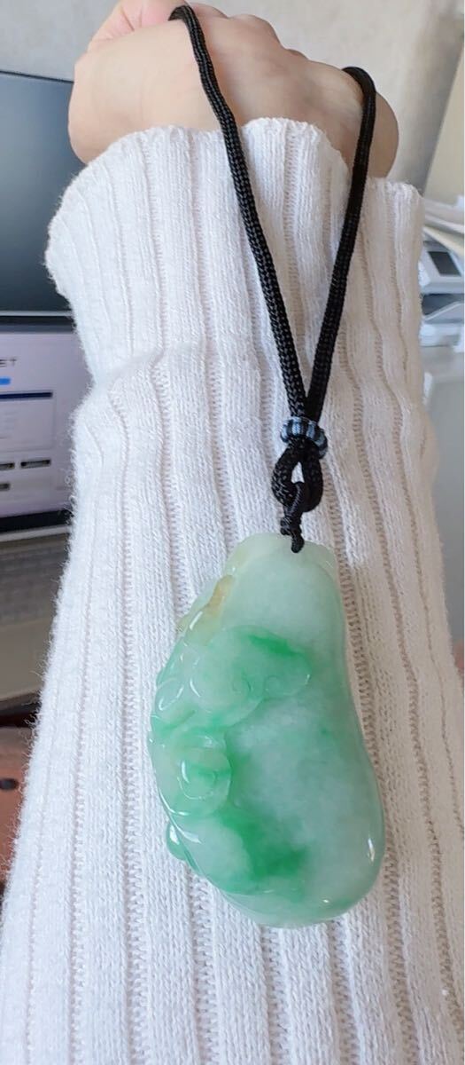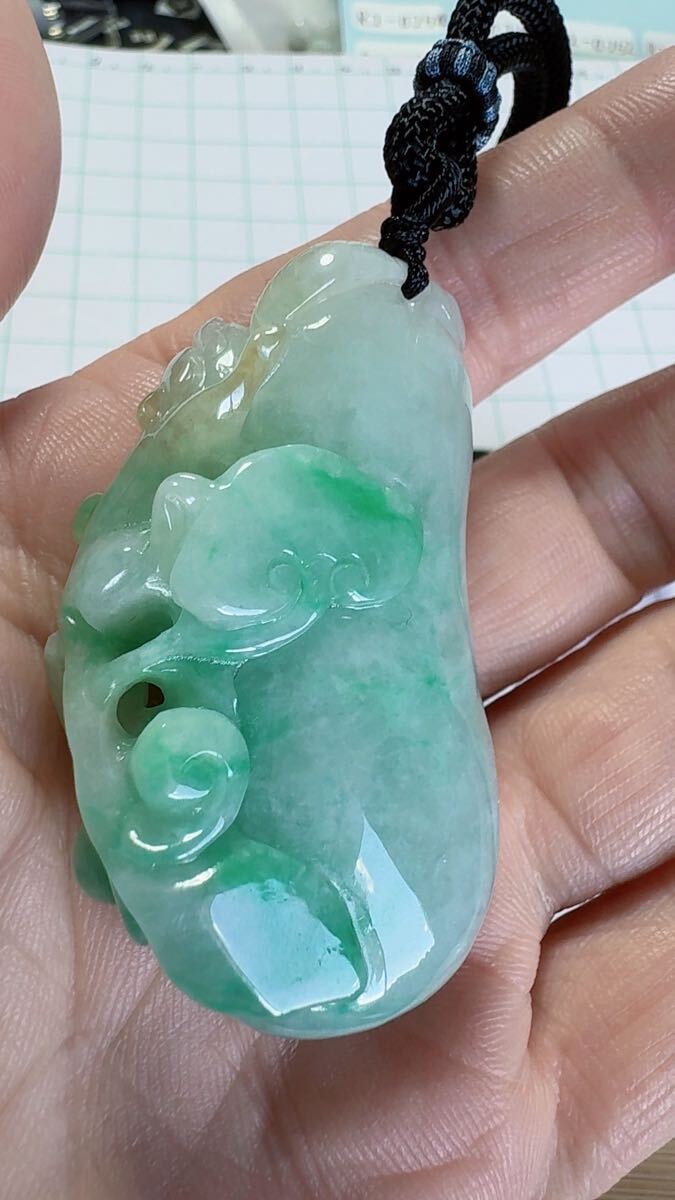 R2-0249 天然本翡翠《本物保証》 翡翠ペンダント 陽春白雪 高品質 一点物 魔除け 昇進 成功 風水 金運 財運 幸運 幸福 縁起