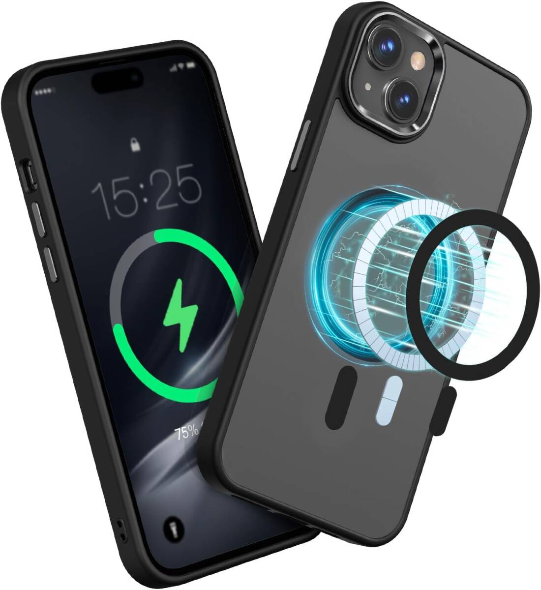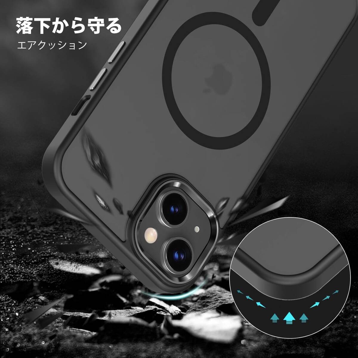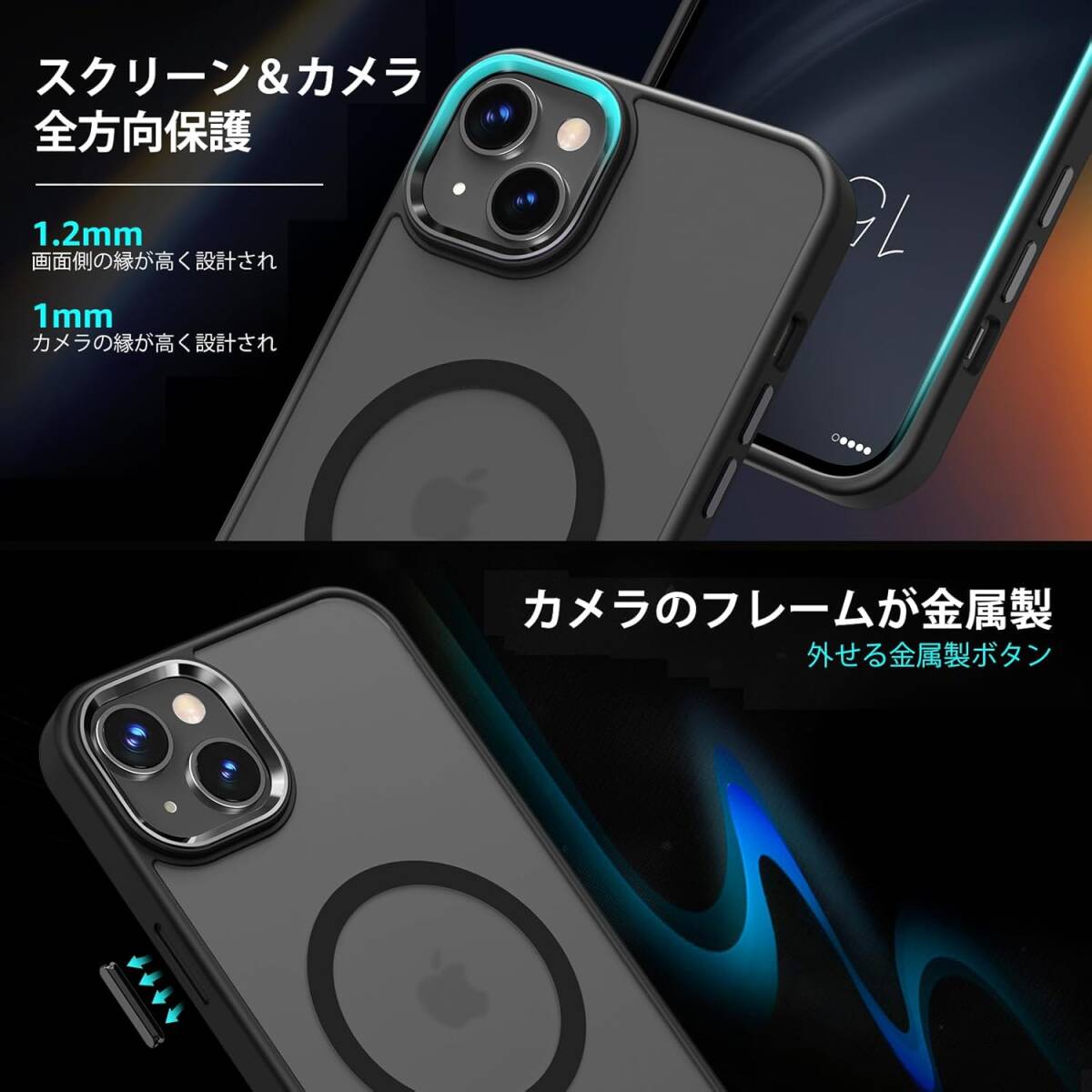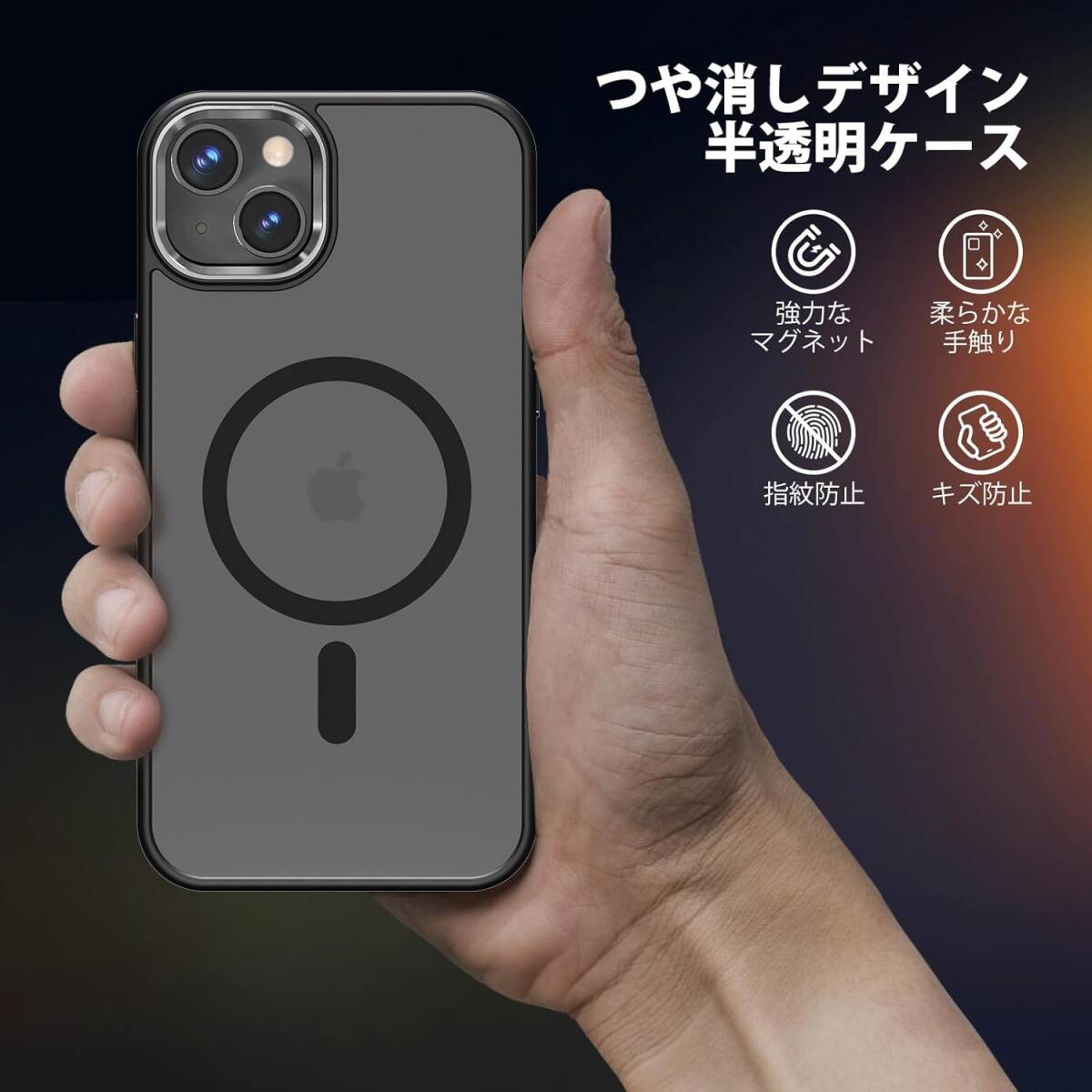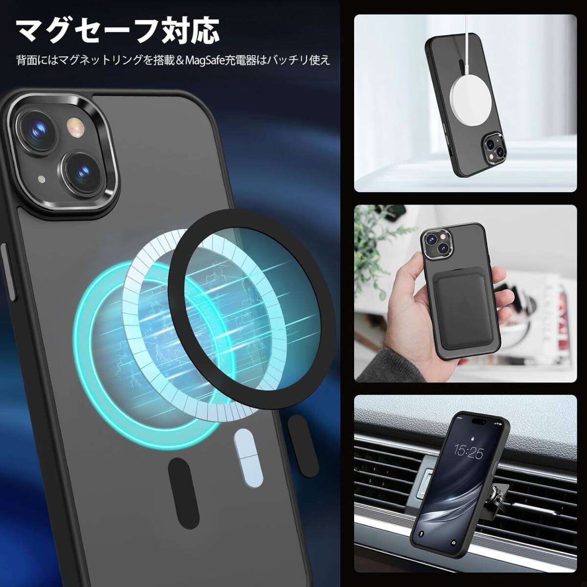 MILPROX iPhone 15 ケース 用 マグネット搭載 Magsafe対応 指紋防止 半透明 つや消しマット 黄ばみなし 米軍MIL規格 超耐衝撃 金属製カメラのフレーム ワイヤレス充電 カバー 全面保護 スマホケース ブランク