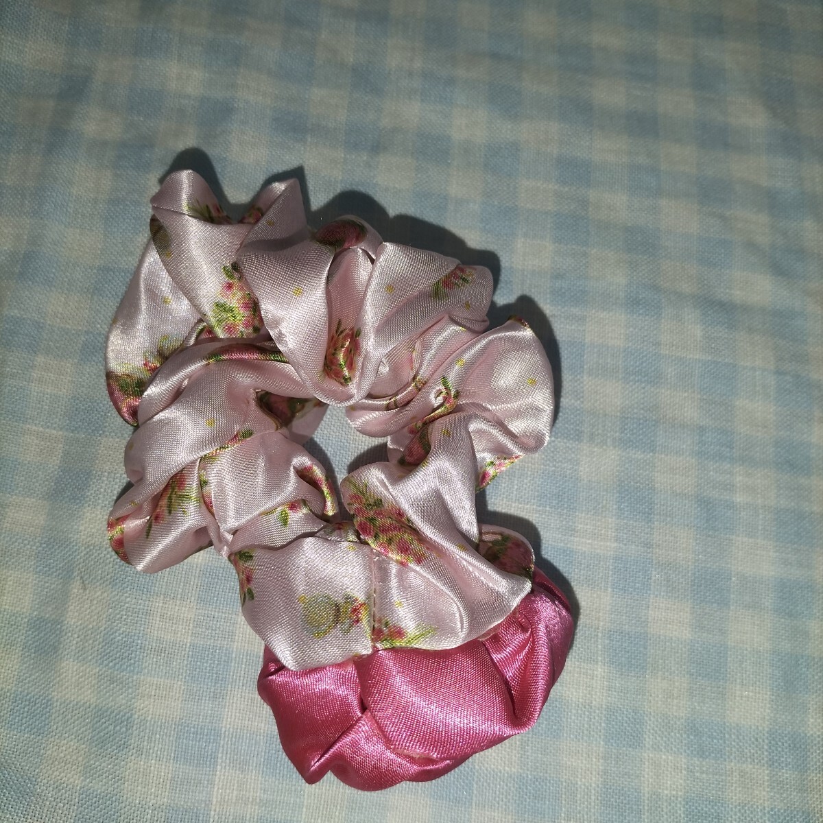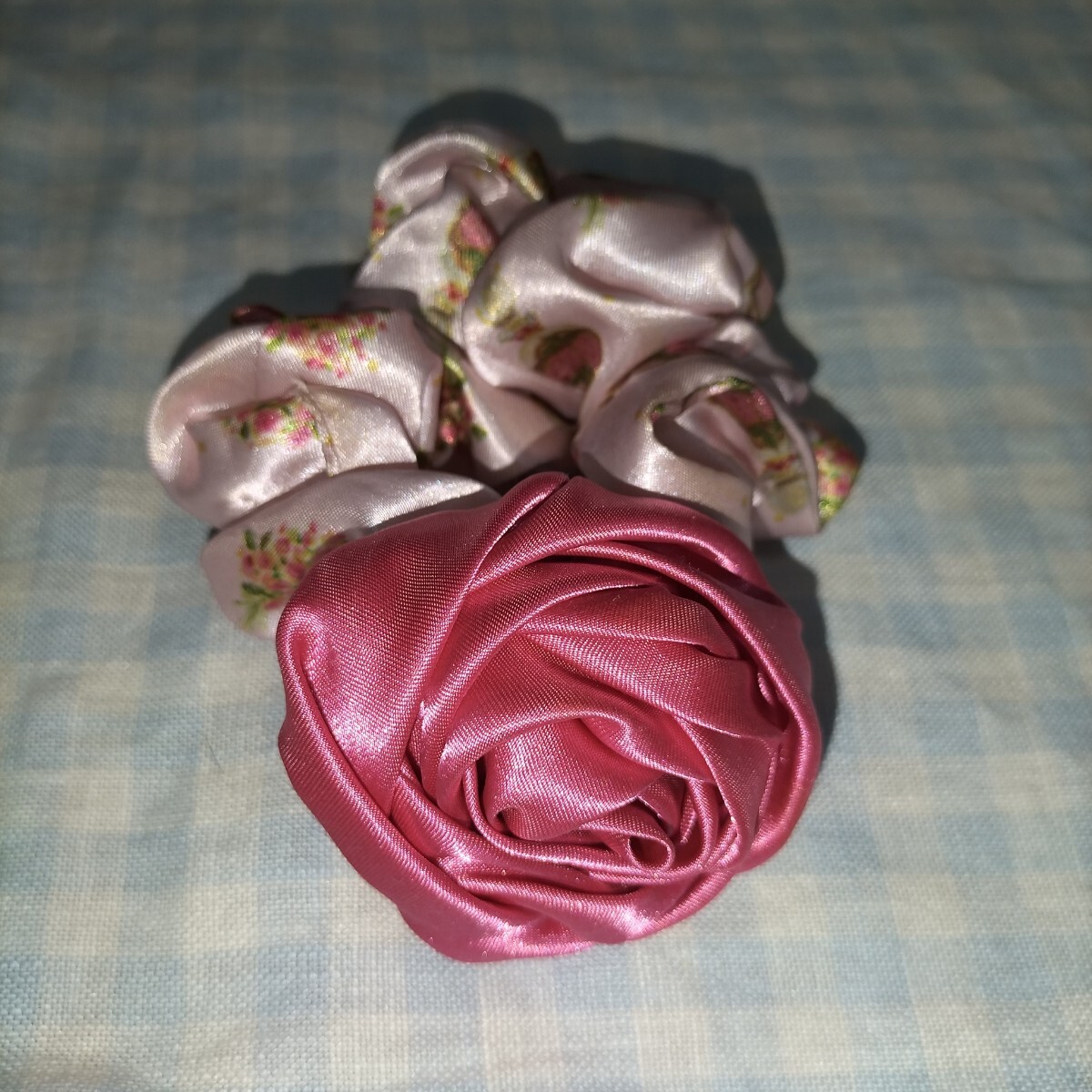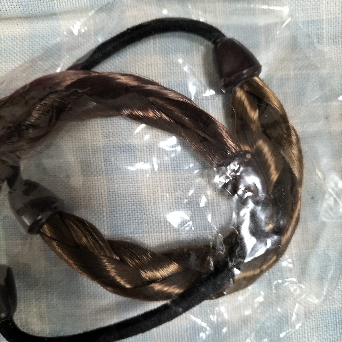 シュシュは使用したかどうかわかりません。ヘアゴムは使用していません。髪の色は少し茶色です。ゴムの色は黒です。