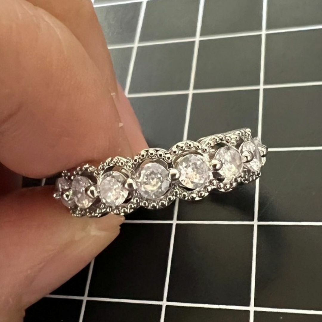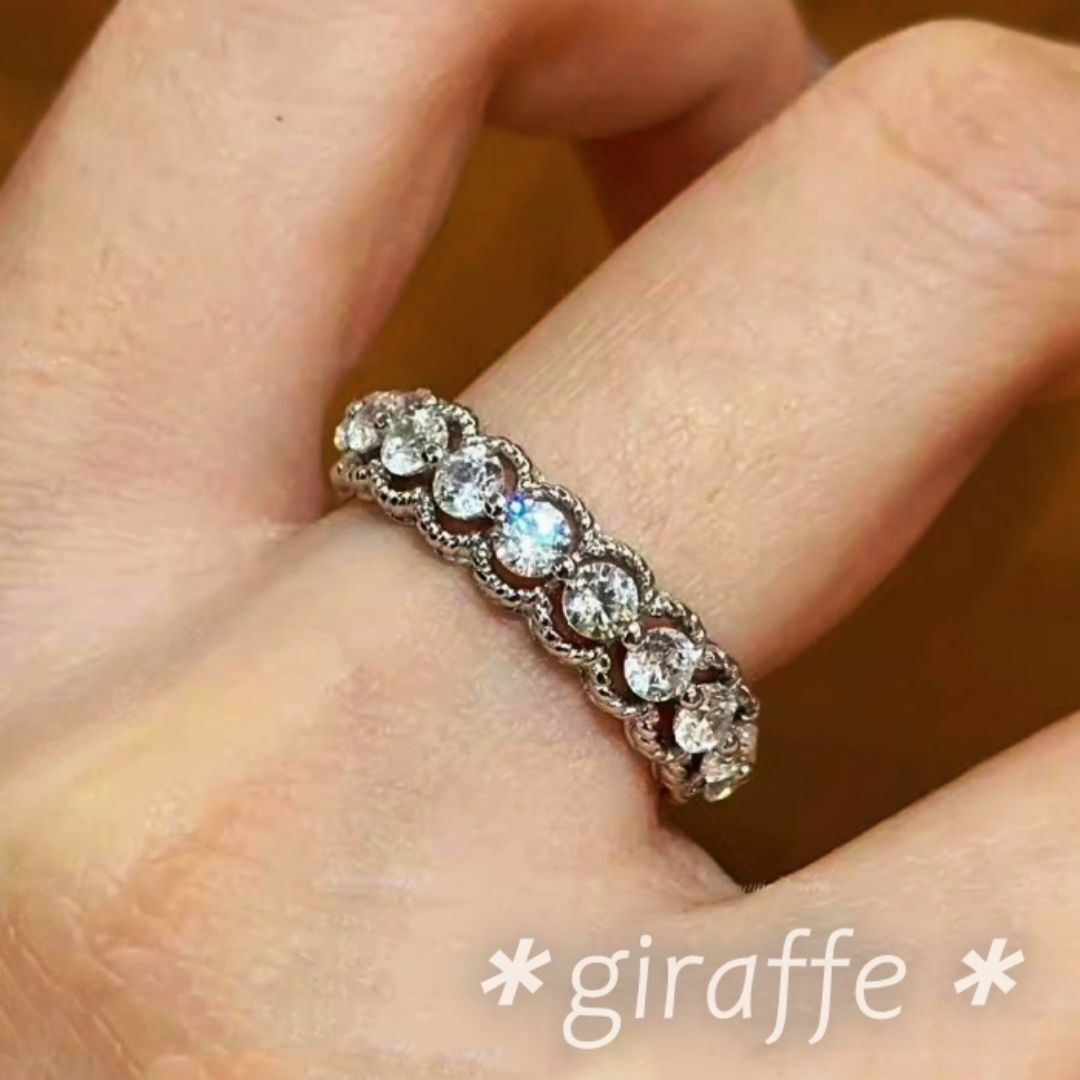 ジルコニアが並んだ華やかで豪華な印象のリングです。
