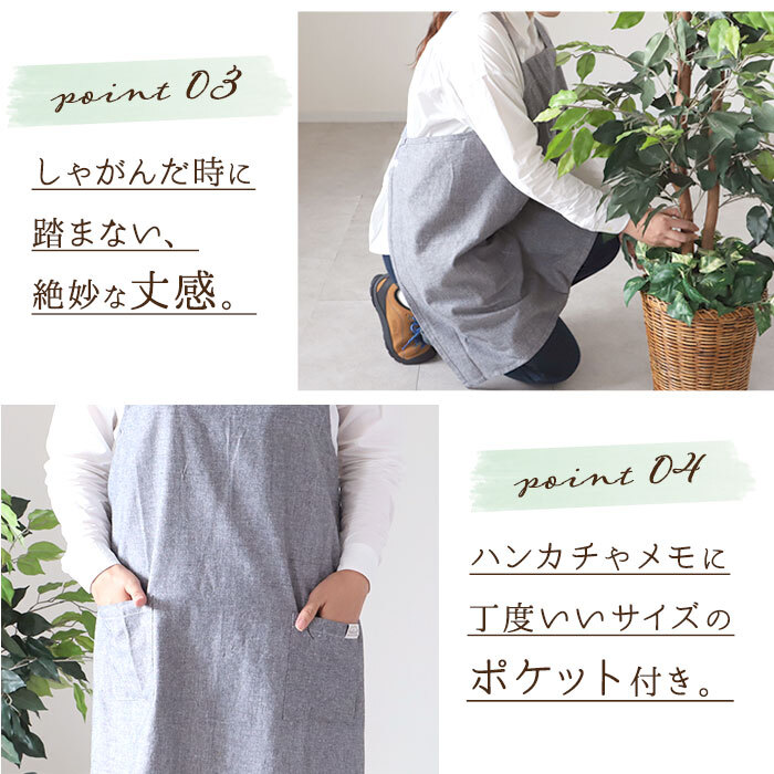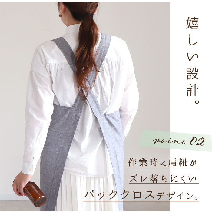 | 商品説明 | ・日常使いしやすいデザインをコンセプトとする「habituel」から、バッククロスタイプのエプロンが発売。 ・良質なコットンでしっかりと織られた生地を使用。丈夫につくられているから、毎日心地よく使える。 ・肩紐はズレ落ちにくいバッククロスタイプ。腰ひもを結ぶ手間がないからサッと被るだけで楽ちん。 ・使いやすいポケットが左右に一つずつ。ハンカチやレシピ、メモ帳などを入れておくのにとても便利。 ・お料理だけでなく、ガーデニングなどにもおススメ♪ ・味わいのあるシャンブレー生地が着る人を選ばない「フロスティ」。シックな雰囲気が先染め生地がシンプルで着やすい「Sol」。バンダナ柄がカジュアルファッションにすんなり馴染む「テレサ」。お好みに合わせて選べる3シリーズ。 |