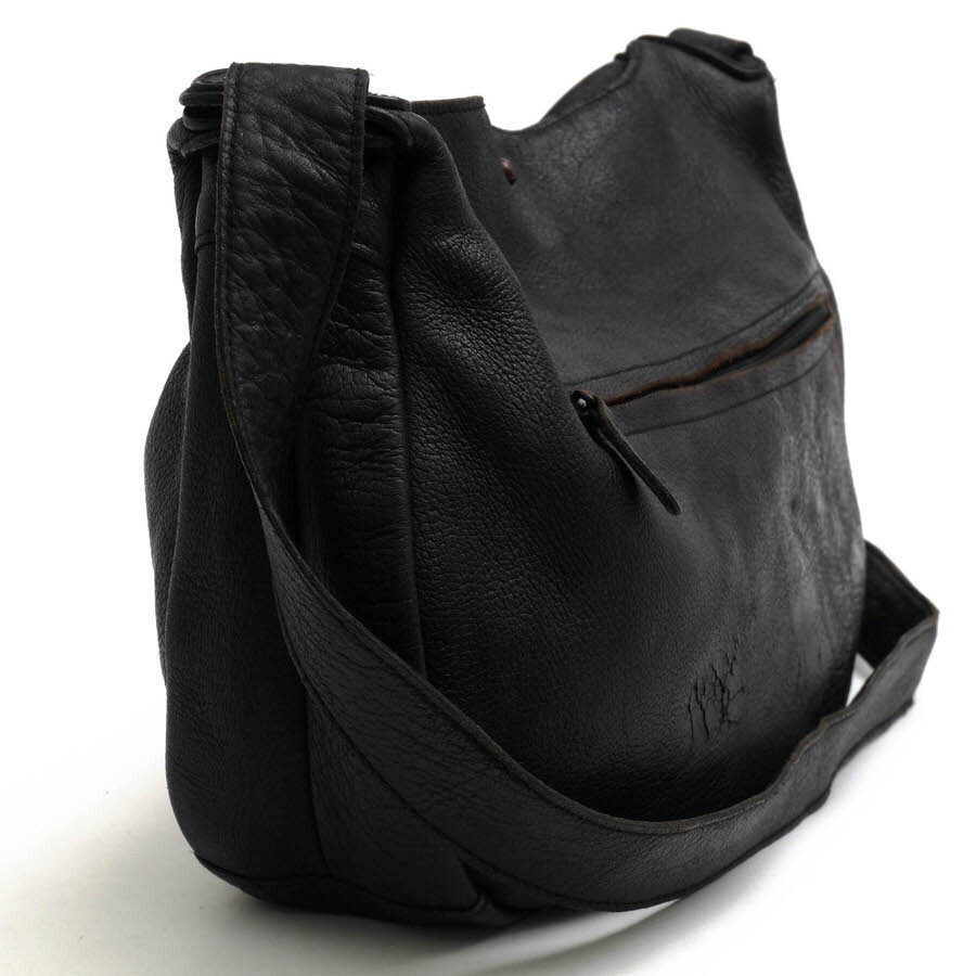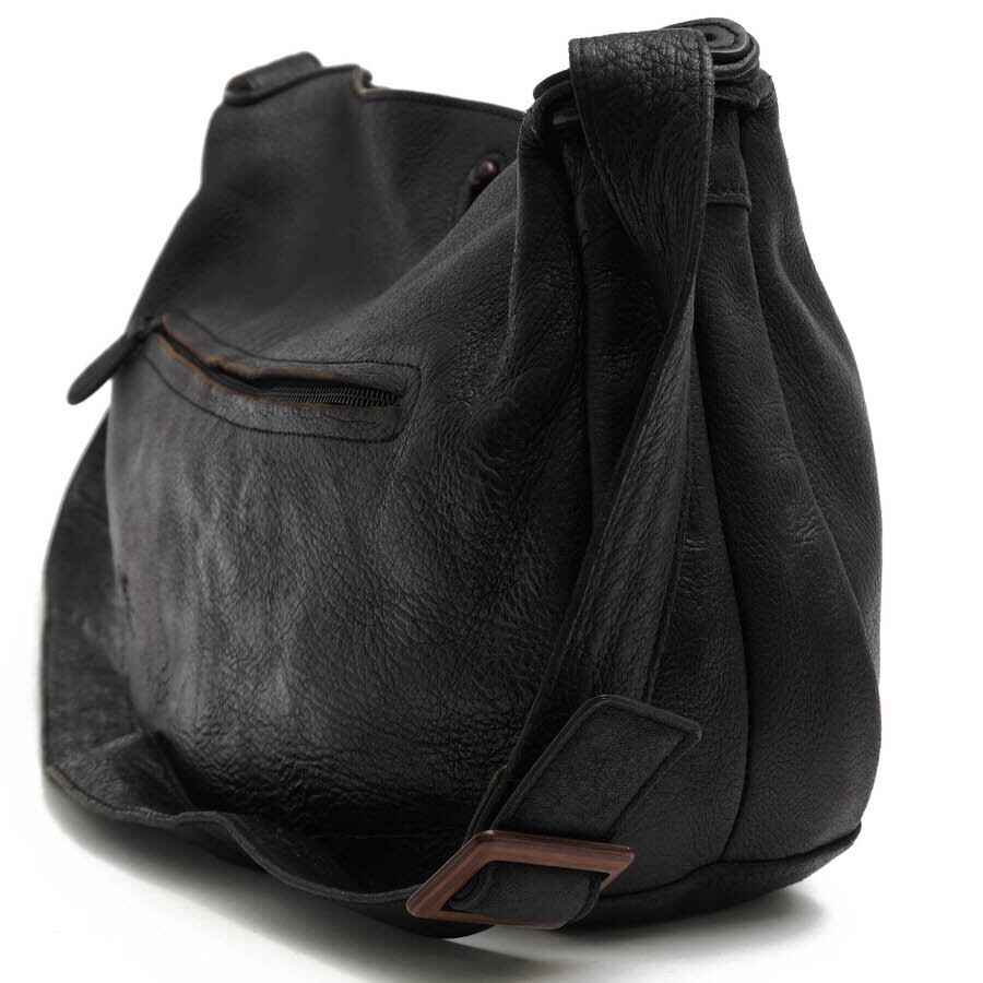 自然の渋で鞣したディアスキン(鹿革)をボディに採用した「DSM-01」。使い込むほどに柔らかさと深い風味が増し、色や表情が変化していく魅力を持っています。内部にはオリジナルのヘンプ生地の裏地とジップ付きポケットがあり、ファスナーポケットが外部にも内部にも配置されており、A4サイズがスッポリと収まるたっぷりとした収納力を持っています。ショルダーストラップの長さは自由に調節可能で、体にフィットする柔らかさと軽さが特徴です。 |