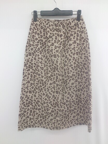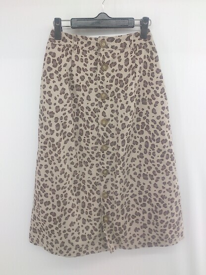 ◇ ehka sopo 豹柄 バックゴム フロントボタン 膝下丈 ナロー スカート サイズF グレージュ系 マルチ レディース P