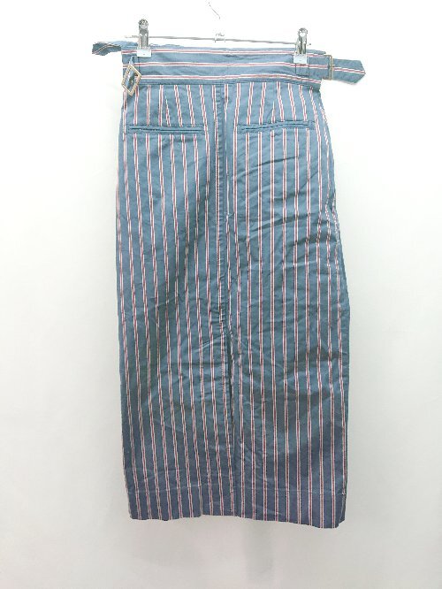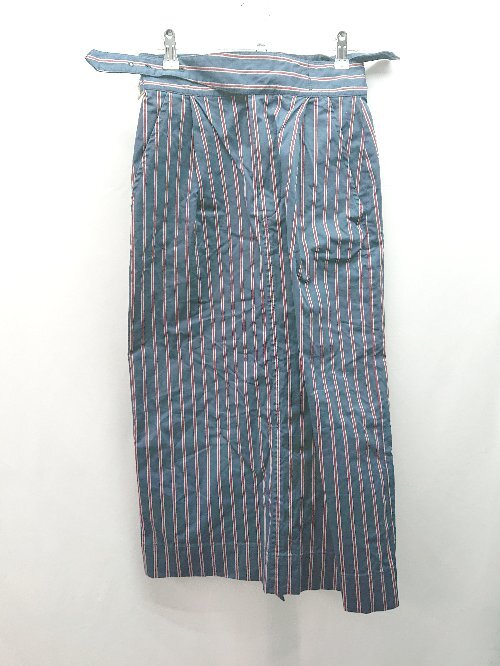 ◇ CHILD WOMAN ストライプ柄 バックスリット ファスナー ロング タイト スカート サイズ36 ネイビー レッド レディース E
