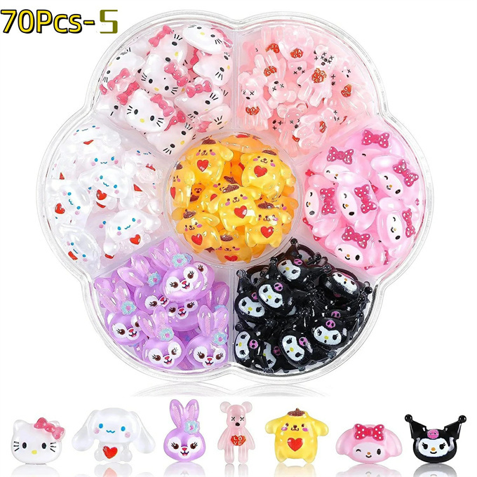 DIY005 70ピース/箱サンリオネイル チャーム かわいい ハロー キティクロミシナモロール ネイルジュエリーチャームラインストーン