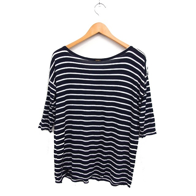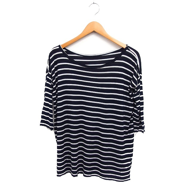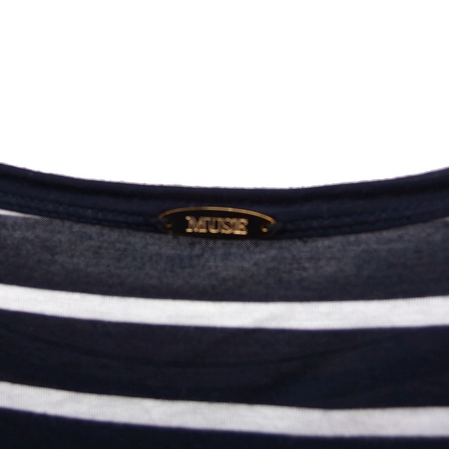 ミューズ MUSE ボーダー Tシャツ カットソー 五分袖 ボートネック ネイビー 紺 /FT21 レディース
