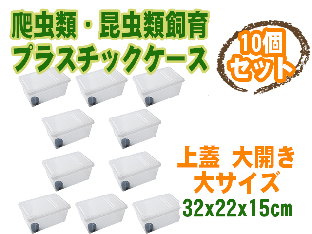爬虫類昆虫類飼育 プラスチックケース 上蓋 大開き 横置き 選べる3サイズ クリア 大サイズ 【10個セット】