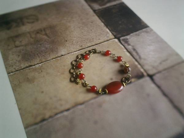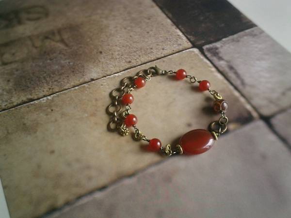 お気に入りのフォルム・・シリーズです♪オリエンタル気分・・シックなカーネリアンのブレスレットです♪ダークオレンジのカーネリアンに唯玉やデザインチェーンを合わせてオリエンタル・モダンしています♪カーネリアンは6ミリの丸玉、18×13ミリのフラットオーバル、唯玉は8ミリ位です、♪♪長さは全長23センチ位で調節自由です♪お揃いのネックレスやピアスも出品しています♪シンプルで飽きのこないいつまでも着けられるデザインを考えて作りました!ハンドメイドをご理解頂いてノークレーム、ノーリターンでお願いします