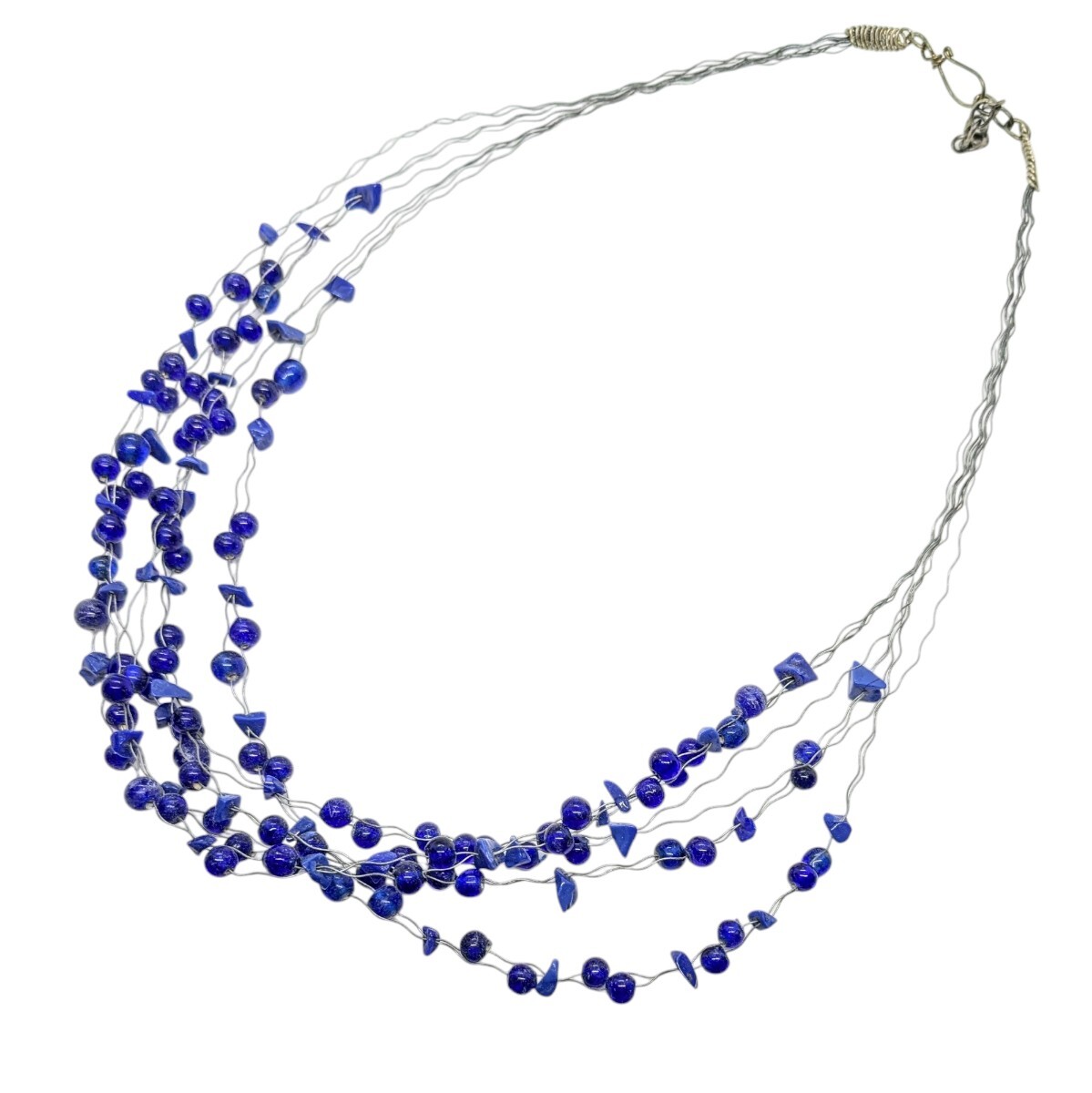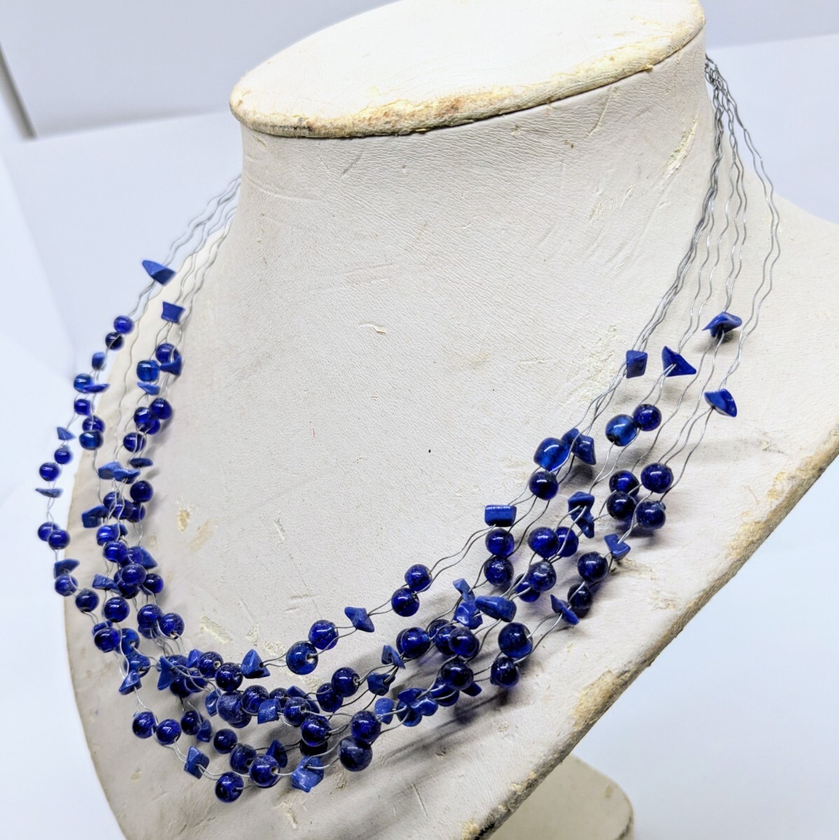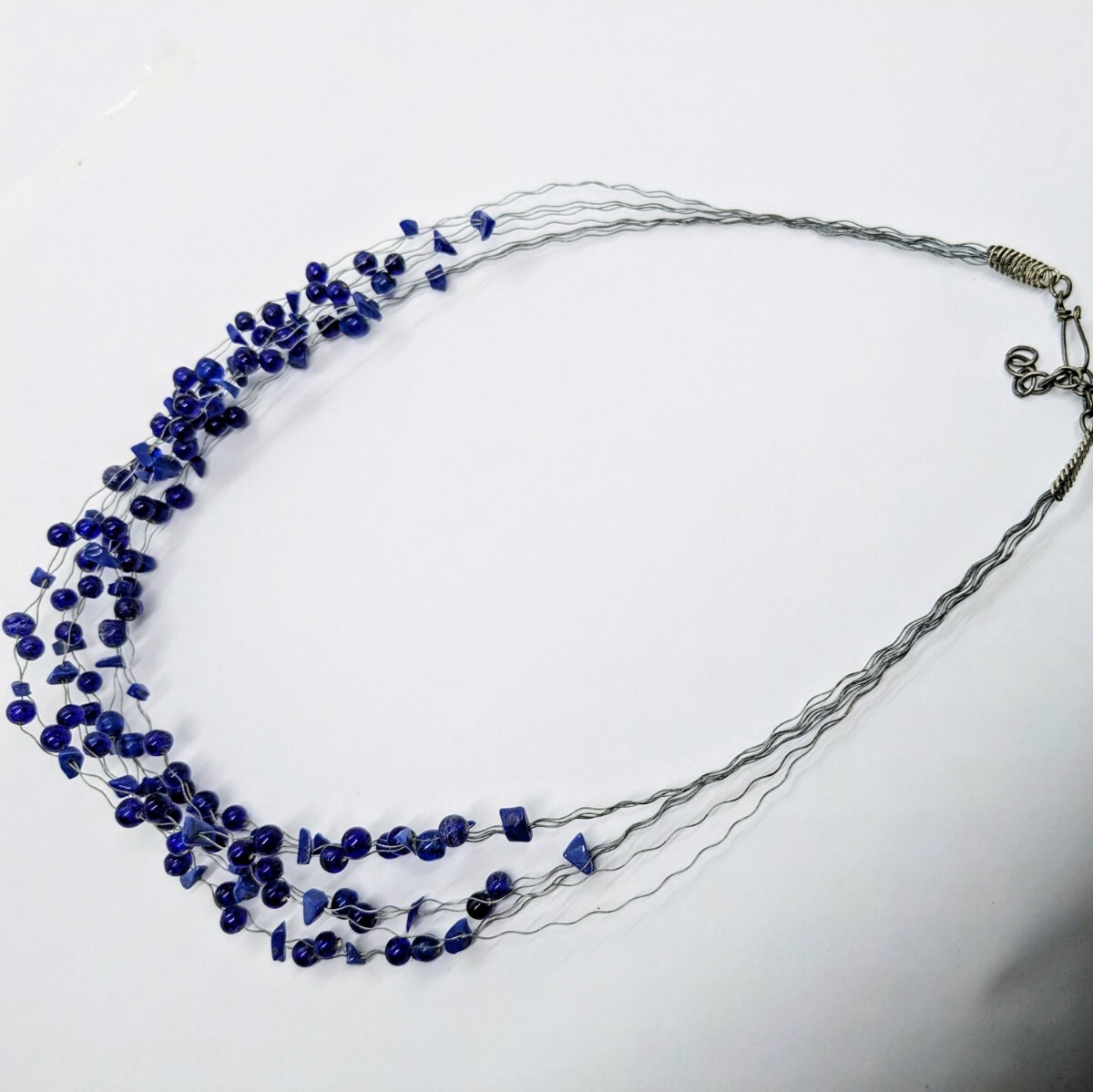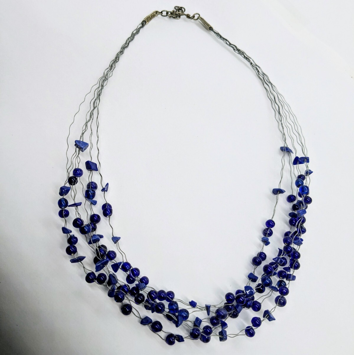 ラピスラズリ 5連ネックレス 鉄細工 ハンドメイド 紫 ラピス 色 ブルー インド製 ゴージャス 軽やか 直径500ml ガラスビーズ 約5ミリ