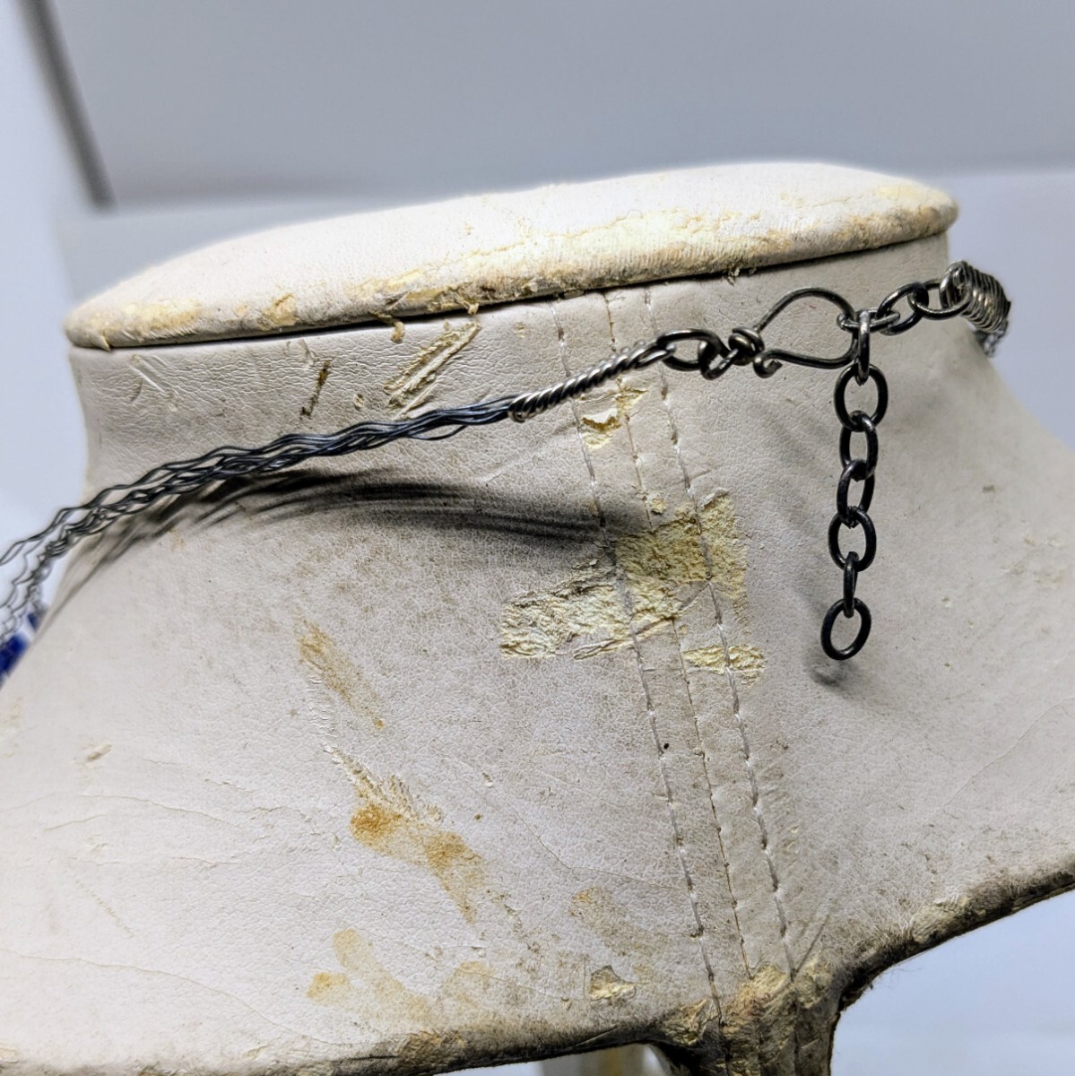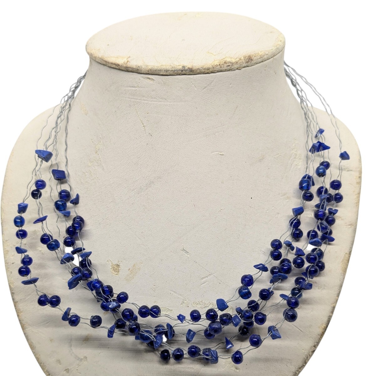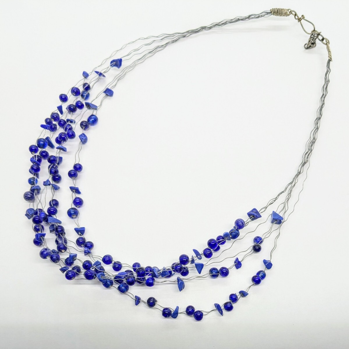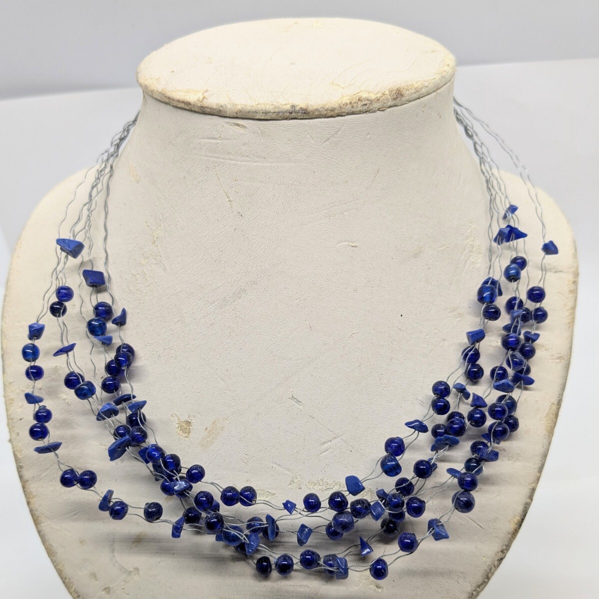 ラピスラズリ 5連ネックレス 鉄細工 ハンドメイド 紫 ラピス 色 ブルー インド製 ゴージャス 軽やか 直径500ml ガラスビーズ 約5ミリ