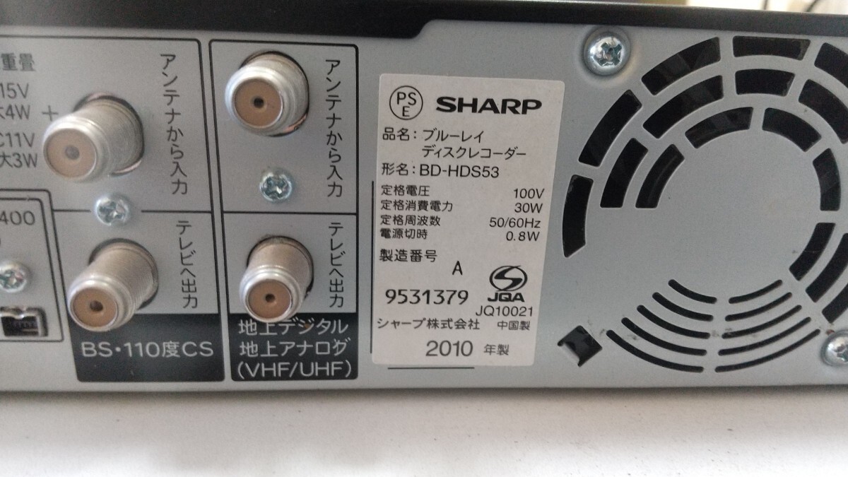 K1393 SHARP AQUOS BD-HDS53 2010年製 ブルーレイレコーダー/シャープ/アクオス 通電OK その他不具合あり 現状品