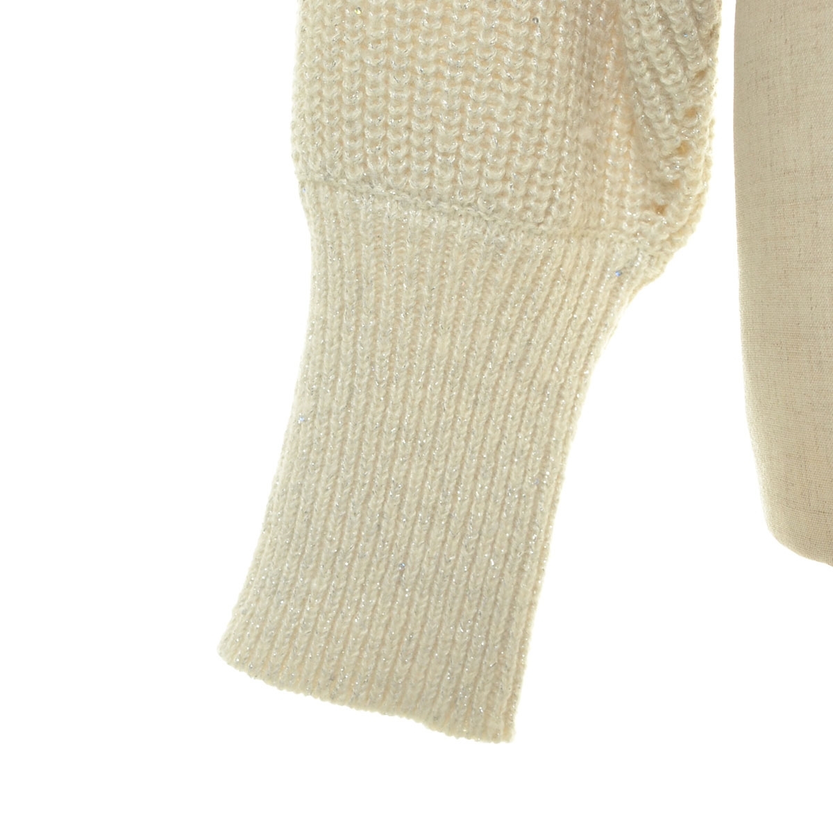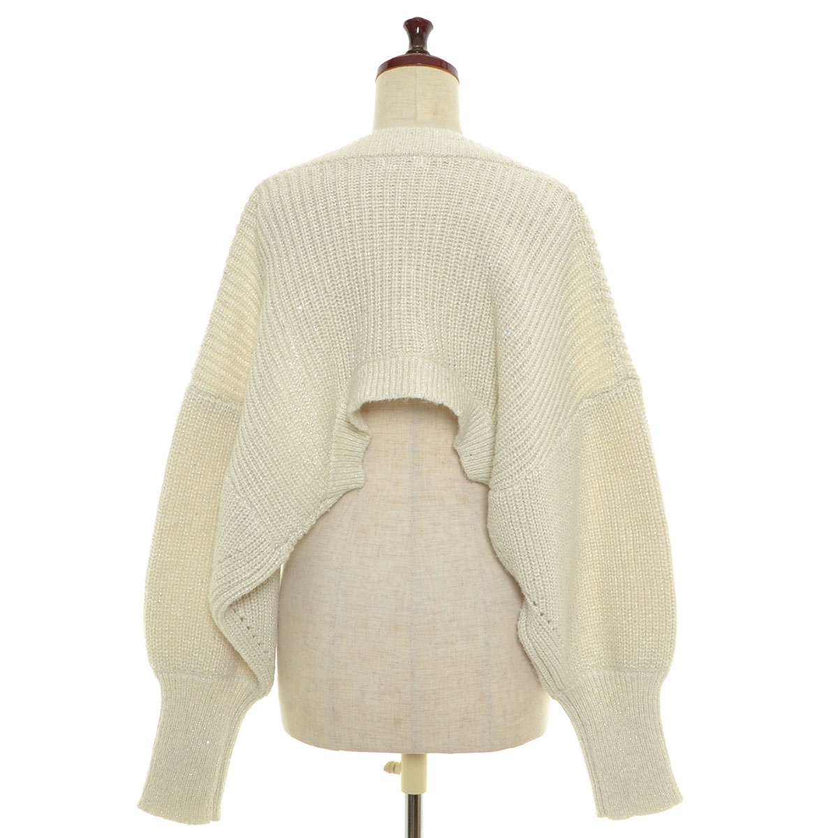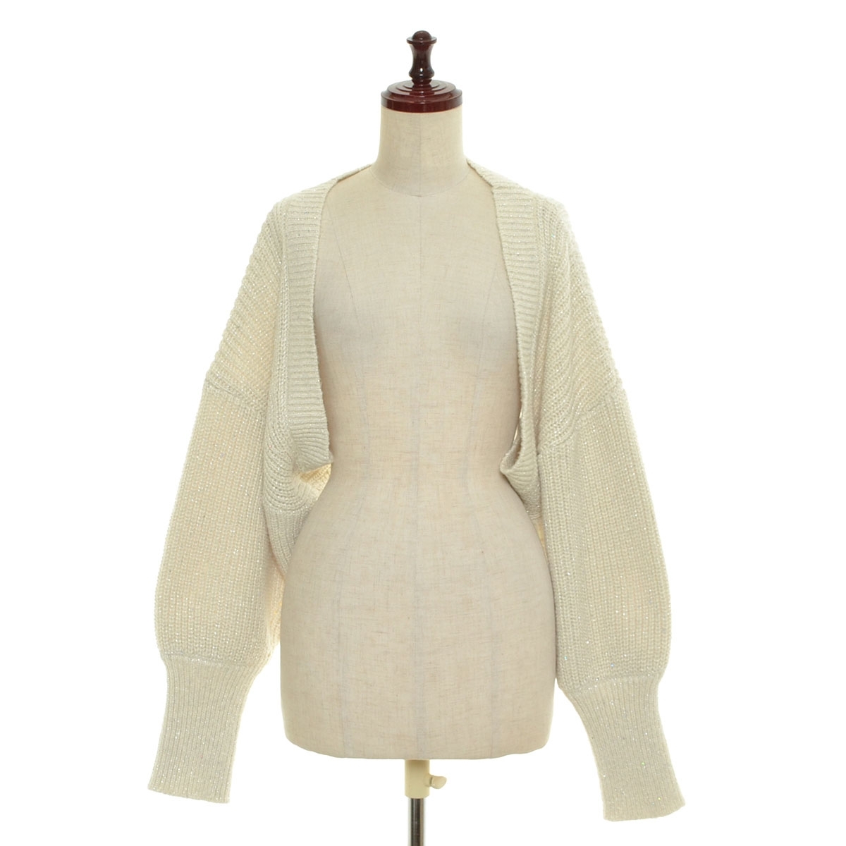 キラキラとした素材が特徴のニットボレロです。スパンコールを使用した今年らしいアイテムで普段のスタイリングをアップデートしてくれます。袖にボリュームを持たせることで可愛らしい雰囲気に仕上げました。
