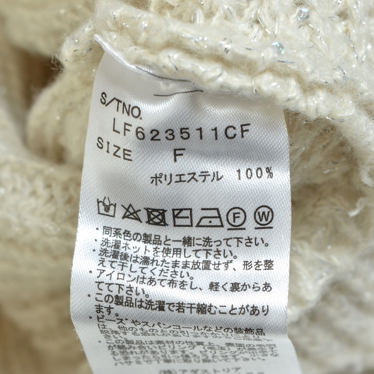 ■526534 ローリーズファーム アダストリア ●ニットカーディガン スパンコールボレロ クロップド ショート丈 ボリューム袖 サイズF