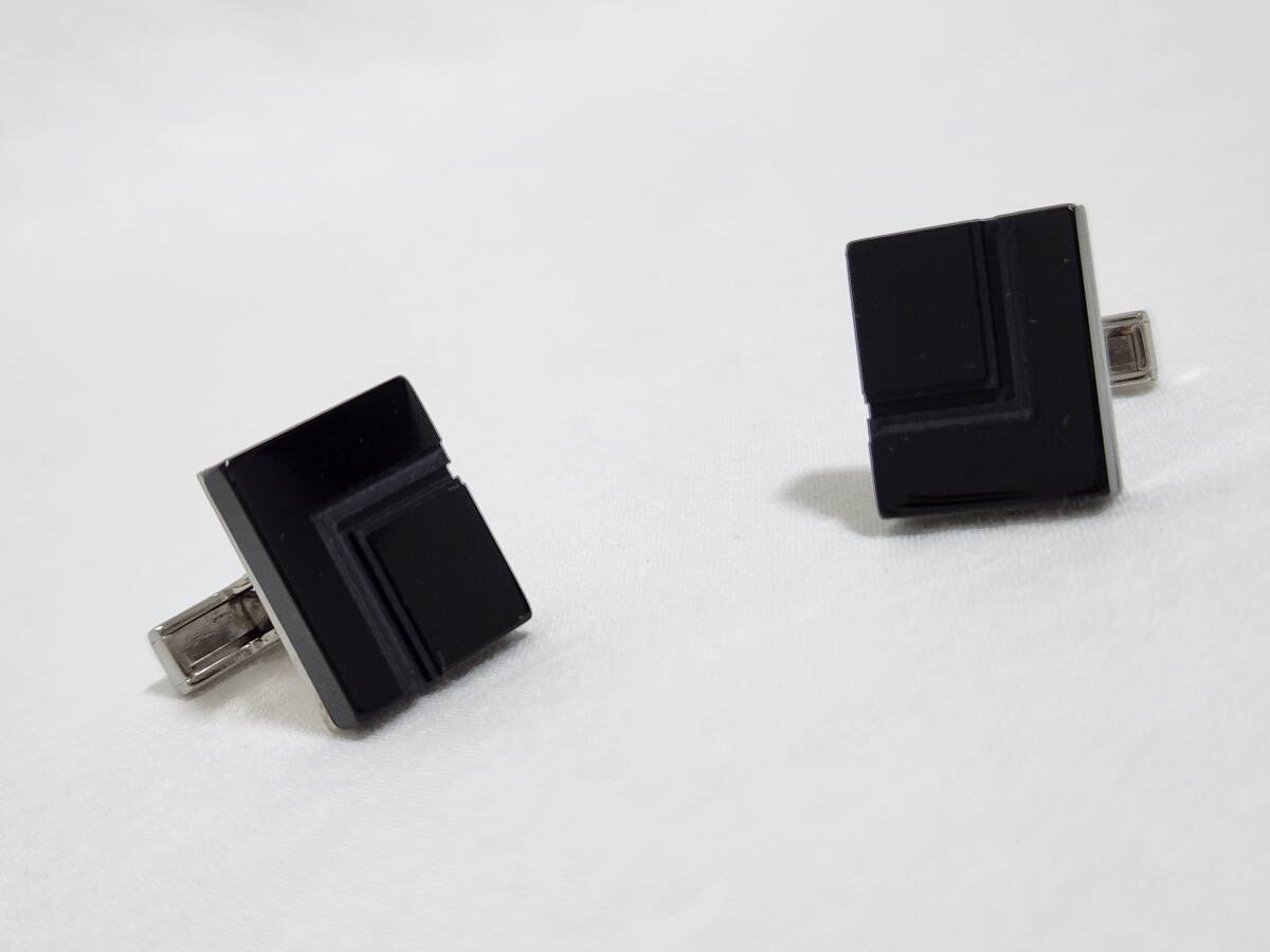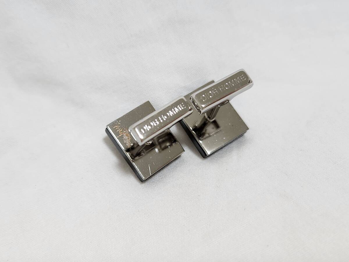 正規 レア Dior Hommeディオールオム レクタンギュラー カフス 黒×銀 シャイニー立体 ラインアート エナメルブラック カフリンクスボタン