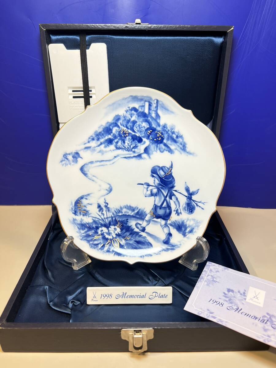 ■ マイセン メモリアルプレート 1998年 イヤープレート 皿  小さなハンス Hanschen Klein 金彩  箱あり 美品 飾皿 Meissen