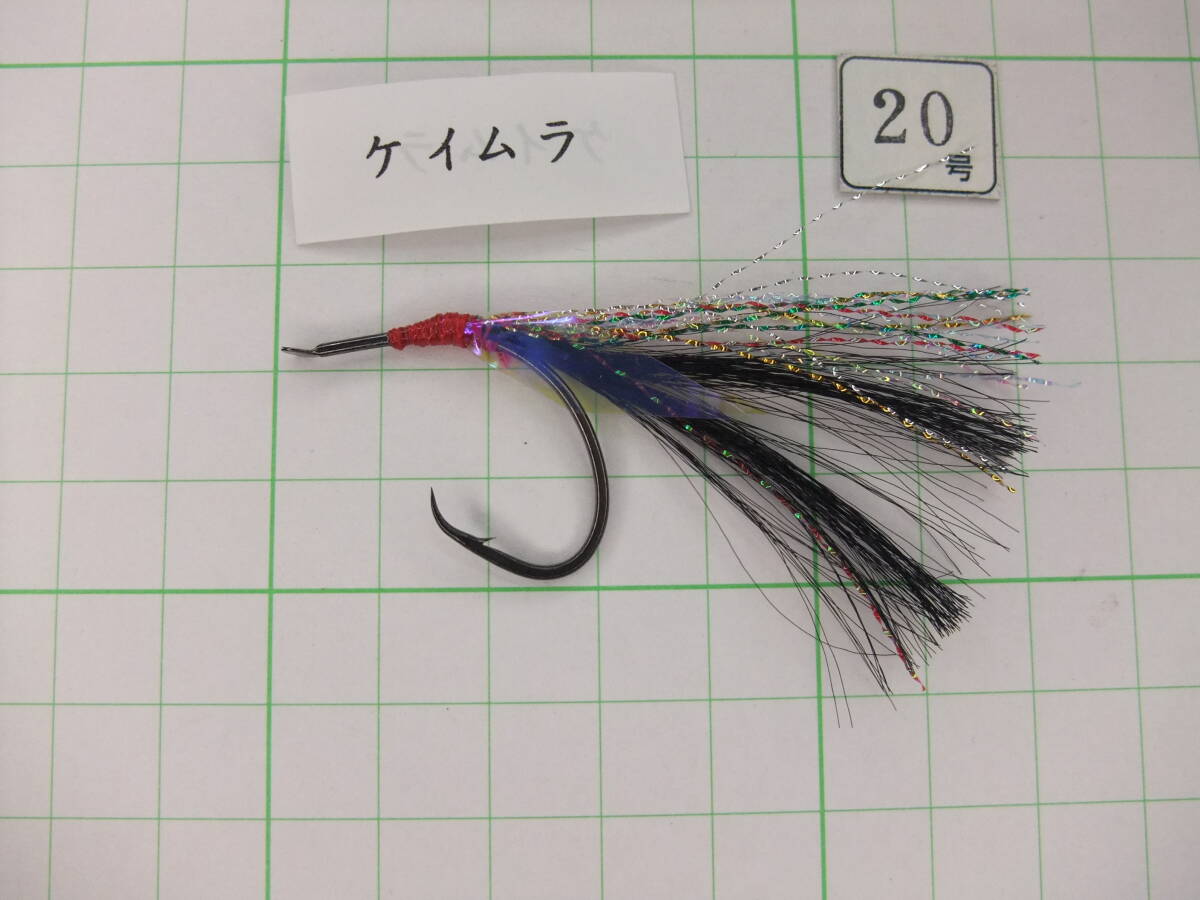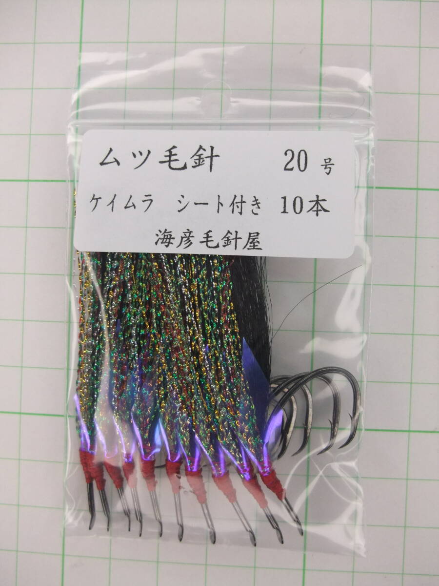 20KK ムツ20号毛針 黒フラッシャー ケイムラシート付き 10本セット
