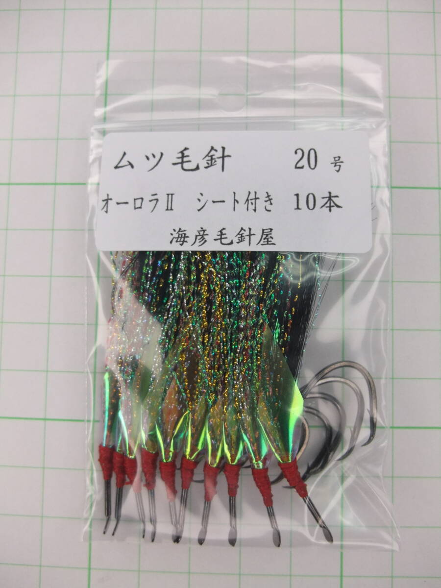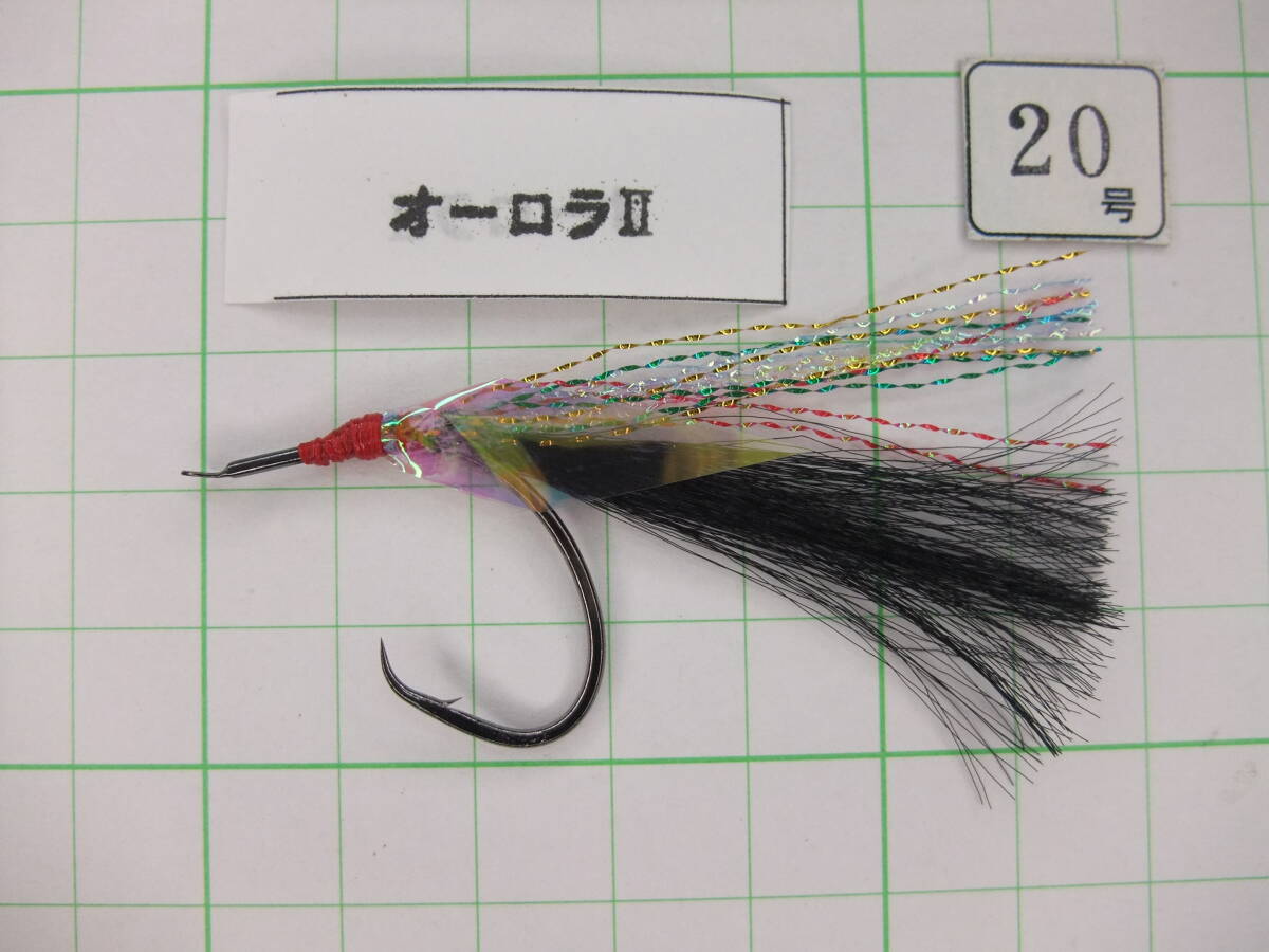 20KO2 ムツ20号毛針 黒フラッシャー オーロラⅡ シート付き 10本セット
