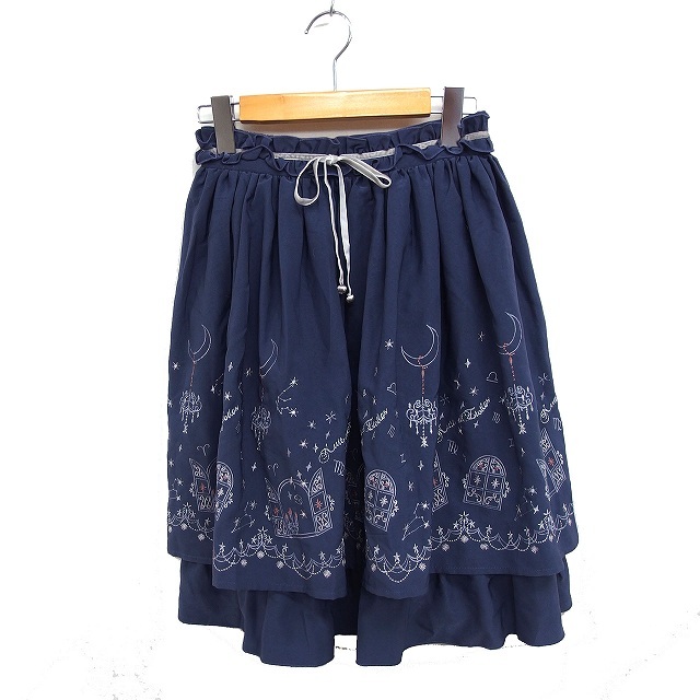 アクシーズファム axes femme 刺繍 ギャザー フレア スカート ミニ リボン M ブルーグレー /FT4 レディース