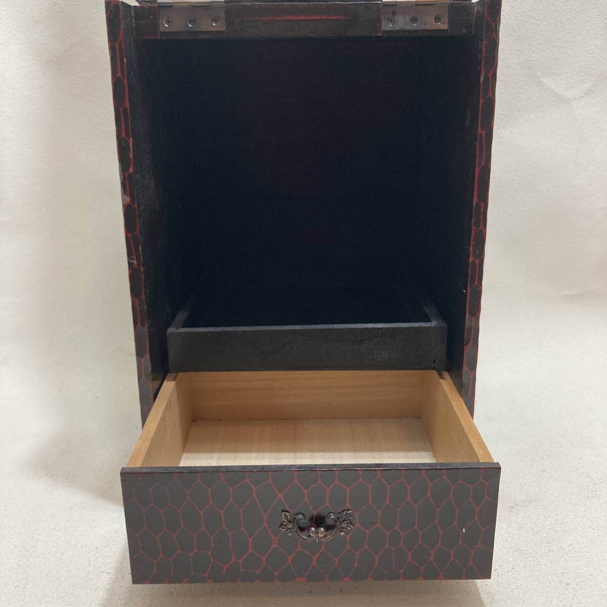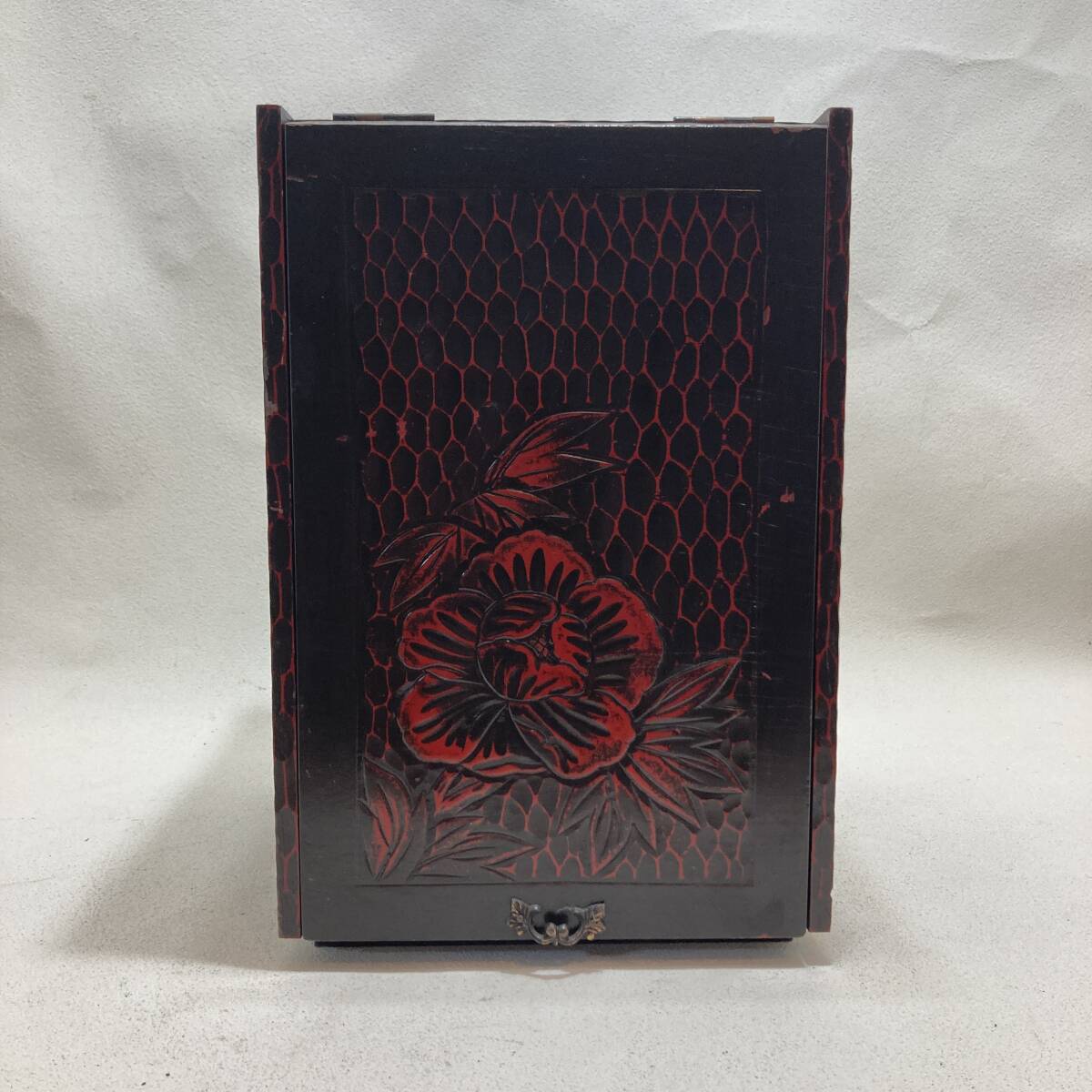 鎌倉彫 姫鏡台 卓上鏡台 小物入れ付き レトロ アンティーク レア物 希少品★K2808Z