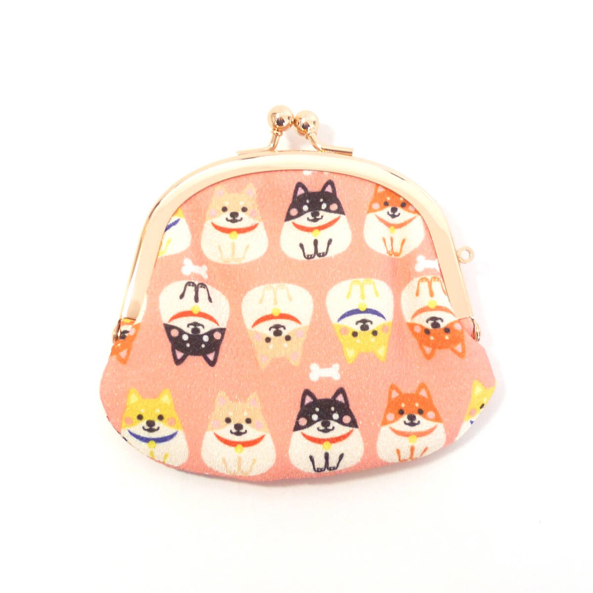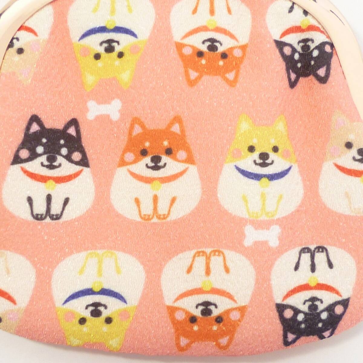 ちりめん生地 がま口小銭入れ コロコロ柴犬さん ライトピンク 犬柄 コインケース ハンドメイド G335 3.3寸