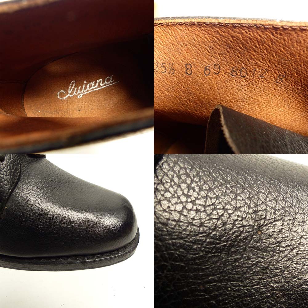 色はブラック・素材はレザー・「Clujana」は東欧ルーマニアの革靴製造メーカーで現在は操業していませんので大変希少な商品です・表記は25.5ですがインソールの長さ(25.5cm)から実寸サイズは(24.5-25cm相当)と思われます。ルーマニア / Clujana / レザー ワークブーツです
