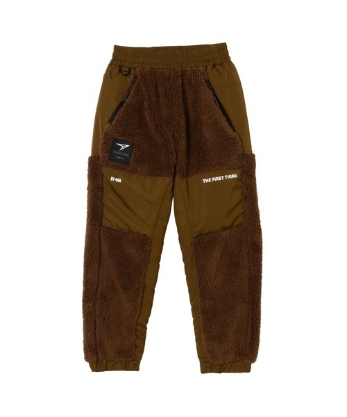 瞬足アパレル《商品特徴》・異なる3素材を使用したボトム・優しい肌ざわりと保温性を兼ね揃えたボア生地採用・全2色展開・3つのポケットにはジップファスナー付き・程よくゆとりをもたせたリラックスシルエット・アジャストコードでフィット感の調節が可能SY-069【瞬足】「コーナーで差をつけろ!!」開発のテーマとして掲げられたこのフレーズには、トラック競技で転倒することの多い子どもたちを、「転ばずに最後まで力いっぱい走らせてあげたい」という、開発担当の思いがありました。日本の小学校の校庭トラック競技はほとんどが左回りということに着目し、常識をくつがえした左右非対称のスパイクを配置し誕生したのが「瞬足」です。晴れ舞台で悔しい思いをすることなく、最後まで走りきれるように・・・という願いを込めて生まれた「瞬足」は、子どもたちの「速く走りたい!」という気持ちを応援しています。【SLBYSYUNSOKU】親目線をテーマに開発されたSLBYSYUNSOKU「正直ギラギラ、キラキラには抵抗が...」そんな声に応えるべく、瞬足から新たなシリーズが誕生しました。シーズン毎にトレンドを意識したアッパーやデザインを採用、シンプルでカッコいいを目指し子供たちの足元へ新たな風をお届けします素材や機能ももちろん、長年子供靴をつくり続けてきたなかで培ったノウハウを活かし運動・通学、様々な生活シーンに対応します。