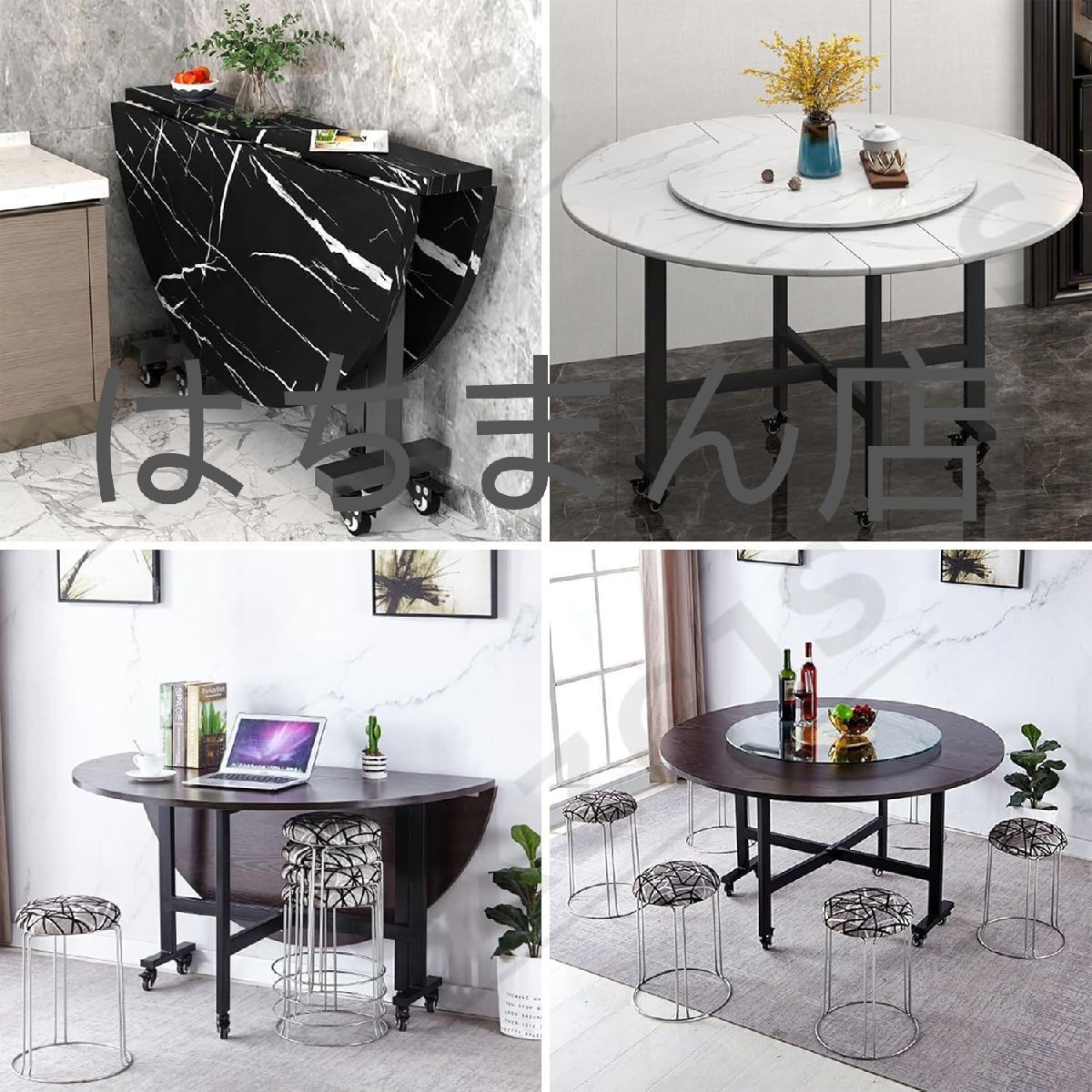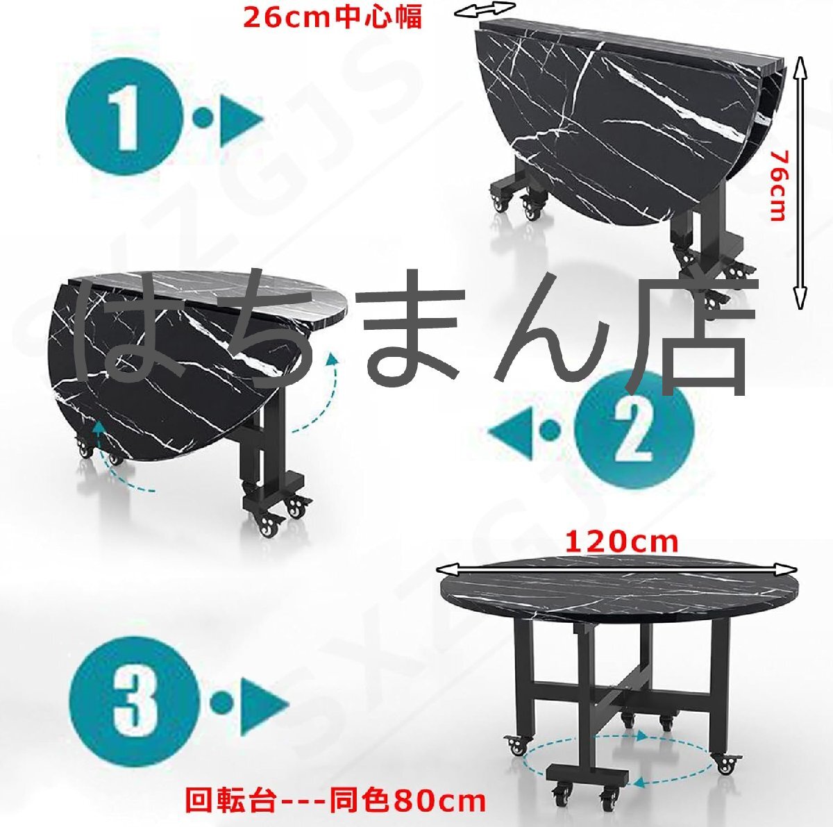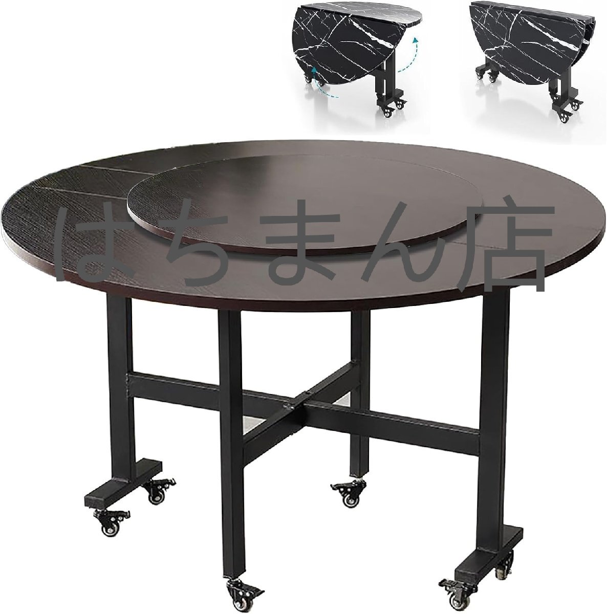 ダイニングテーブル 折り畳み 丸 食卓テーブル 4-8人用 100/120cm 折りたたみテーブル 80cm回転台付き 120+80cm同色の回転台 黒いクルミ