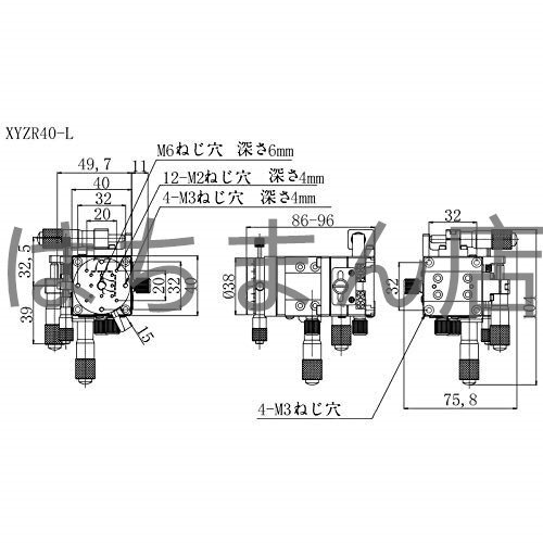 XYZR軸ステージ 研究用 小型 10μm高精密 8.8N 40mm*40mm 微調整 手動 マイクロメーター 手動変位スライド XYZR40-L