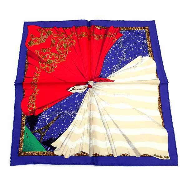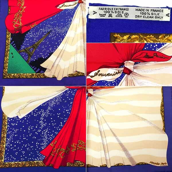 コメント フランスを象徴するエッフェル塔100周年記念に作られた少し小さめなスカーフ「カレ45(ガヴロッシュ45)」Souvenirs de Paris(パリの思い出)です。紫が入ったブルー地に赤と白のスカーフ、満点の星空の下にそびえるエッフェル塔を描いた華やかなモチーフが素敵です。折り方で印象が変わり、バッグの持ち手に巻き付けたりファッションのアクセサリーとしてやジャケットのポケットチーフ等、様々にお使い頂けます。