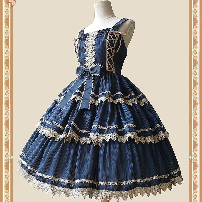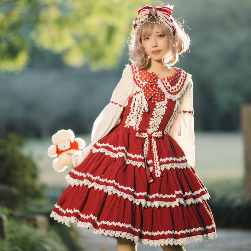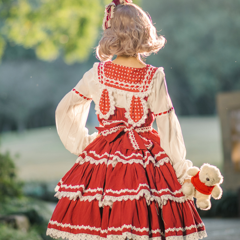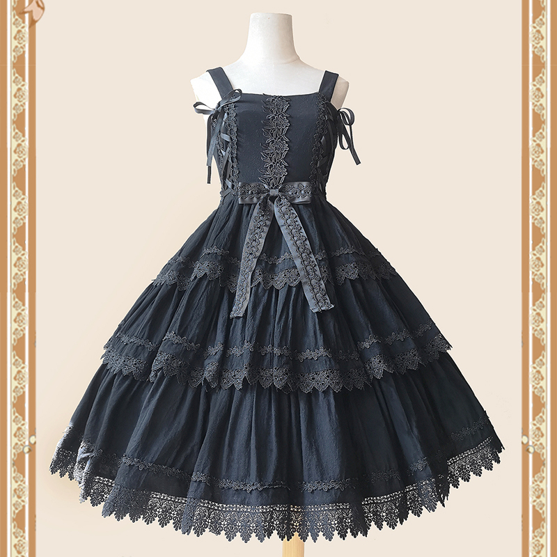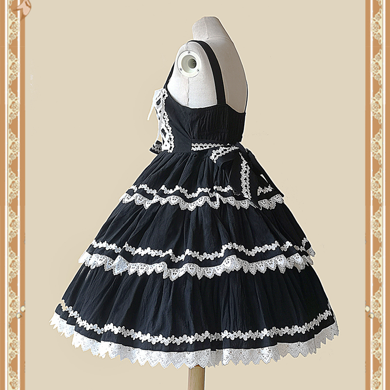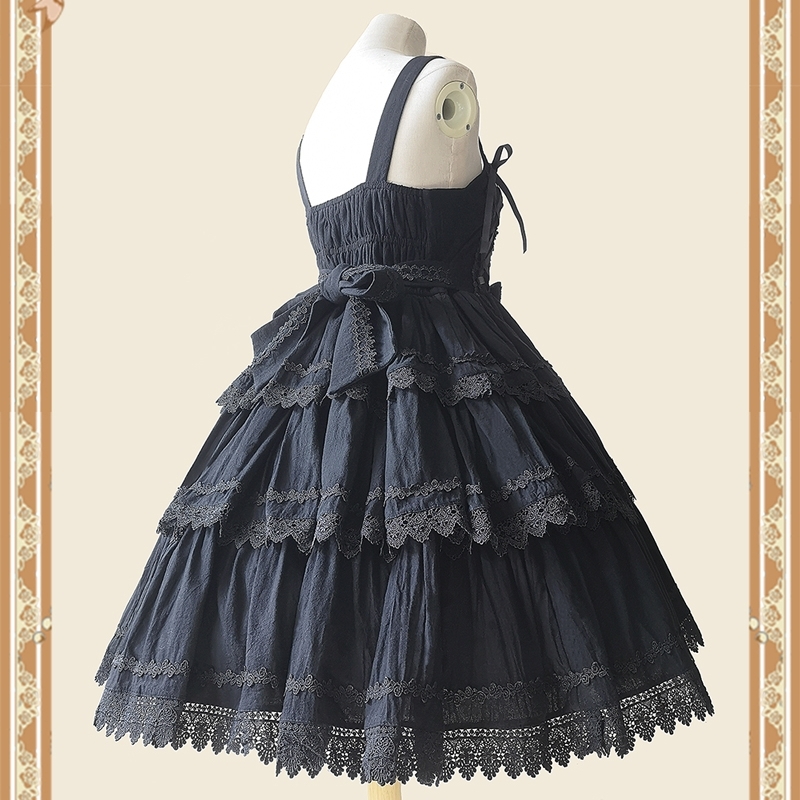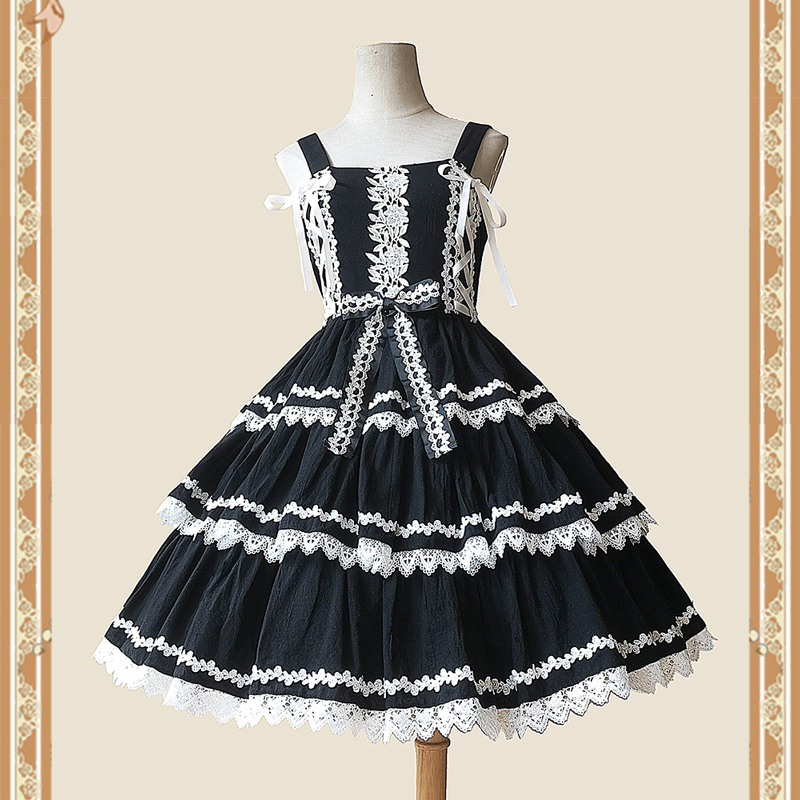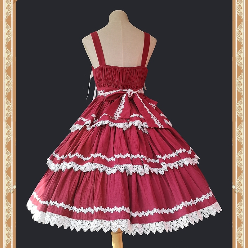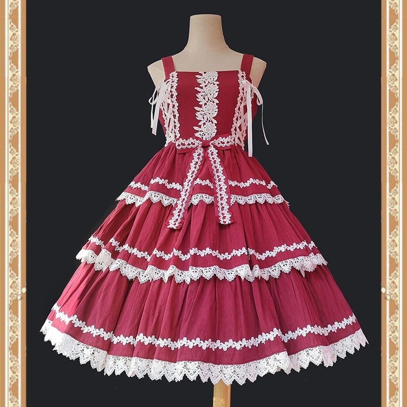 配色使いや、ふんだんにあしらわれたレースが可愛いらしい、 通年活躍するロリータジャンパースカート♪ 三段のティアードスカートで、たっぷりとしたボリューム感がCUTEです☆ 後ろはシャーリング仕様になっており、着心地も良いです。 裏地は付いていません。 注:本商品はジャンパースカート1枚のみです。その他の商品は含まれていません。 製造時期により、レースなどは画像と異なる可能性がございます。 ◆カラー: レッド×ホワイト、ブラック×ホワイト、ブラック×ブラック、ネイビー×ゴールド ◆素材:ネイビー×ゴールド:シフォン 他色:コットン ◆サイズ:S、M、L、XL