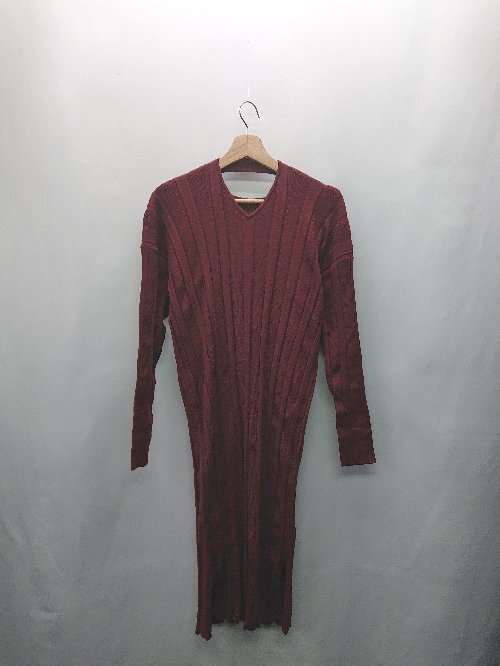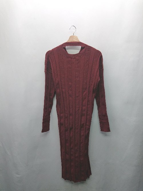 ◇ ⊇◎●未使用● KBF リブニット バックオープン 長袖 ロング ワンピース サイズ1 レッドブラウン レディース E