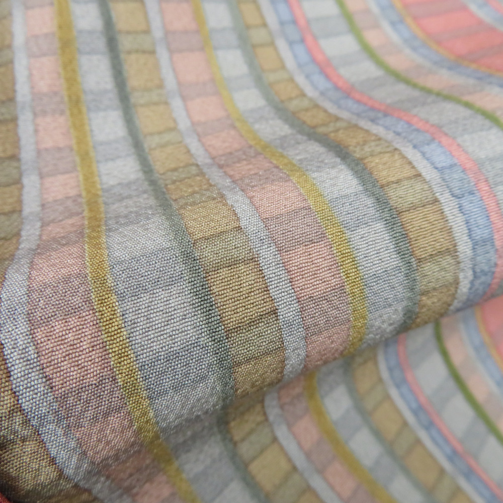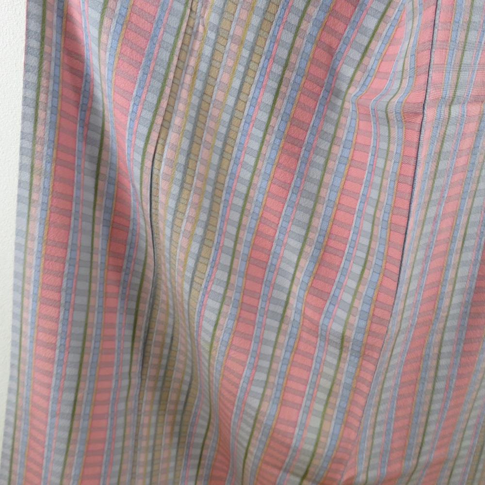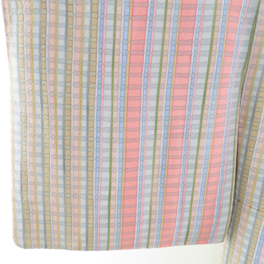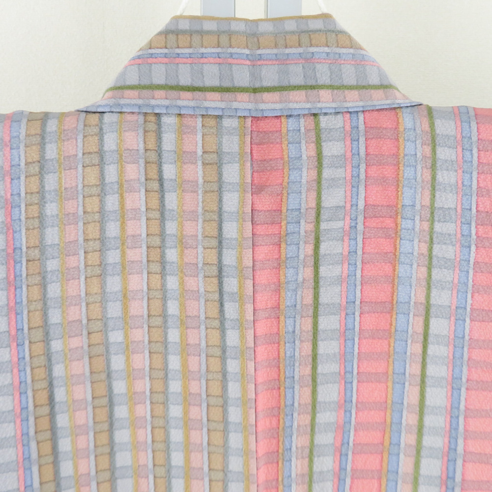 | 商品説明 | 胴裏:絹 八掛:絹 淡いパステルカラーの格子が配された小紋着物でございます。 名古屋帯や半幅帯と一緒にカジュアルコーディネートをお楽しみください。 | ||