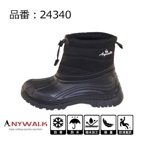 男女兼用 防寒 防水 26.0cm ブラック ダウンブーツ スノーシューズ 防寒ブーツ 寒さ対策 防寒対策 防水 撥水 起毛素材 幅広 防滑 aw_24340