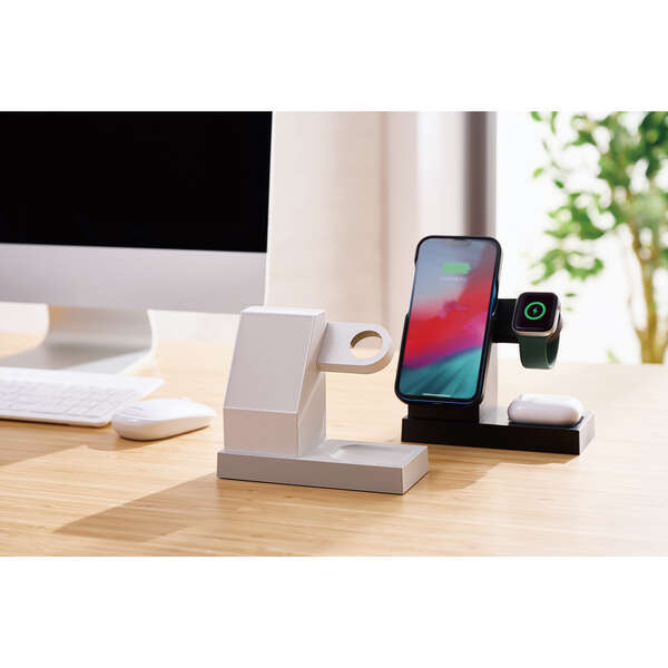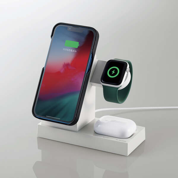 | ●MagSafe対応iPhoneシリーズ、ワイヤレス充電対応AirPodsシリーズ、 Apple Watchシリーズを3台まとめて同時に充電可能 | |