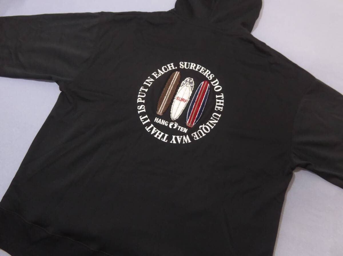 背面にサーフボードBIG刺繍ロゴ 裏起毛シャギー スウェット パーカー