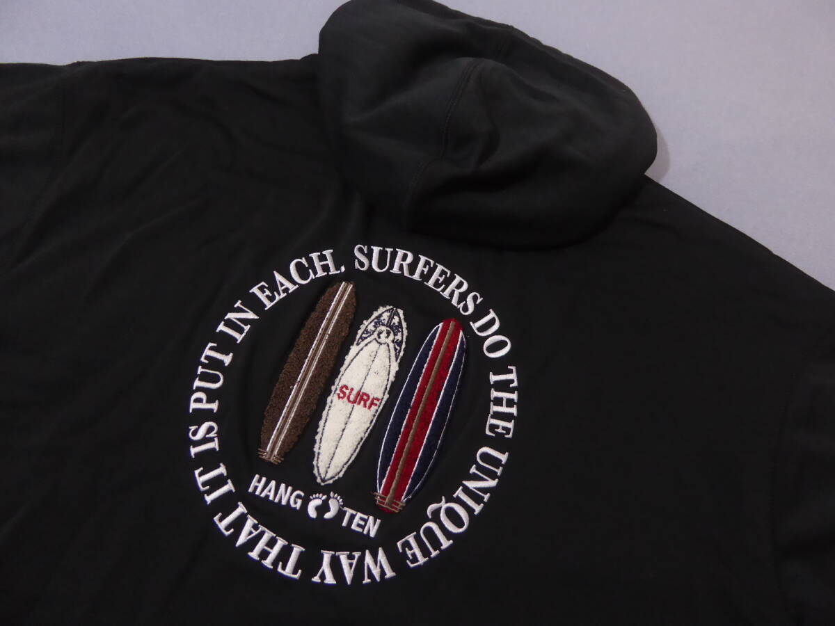 HANGTEN ハンテン サーフボードBIG刺繍ロゴ 暖か 保温 裏起毛 スウェット パーカー LL 黒