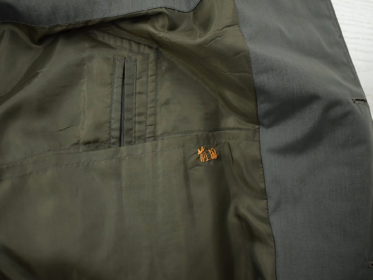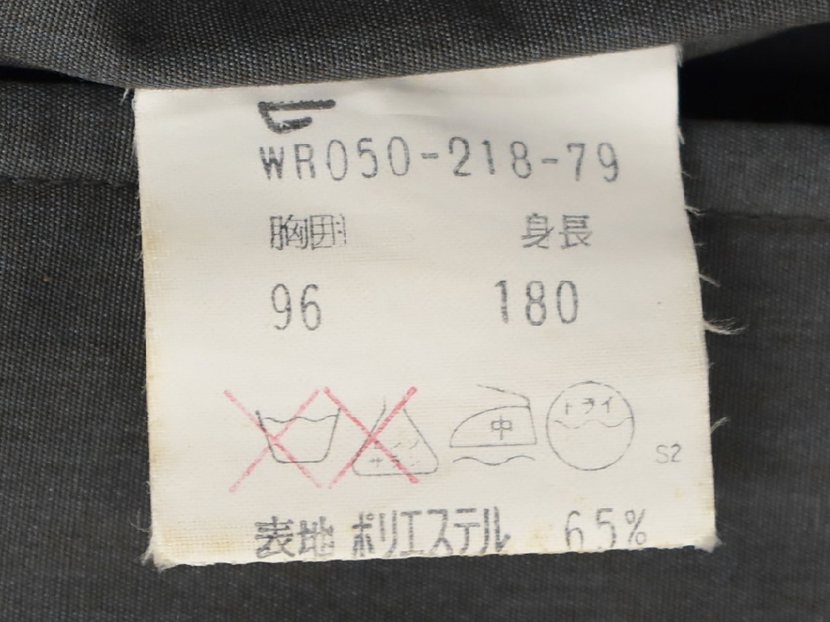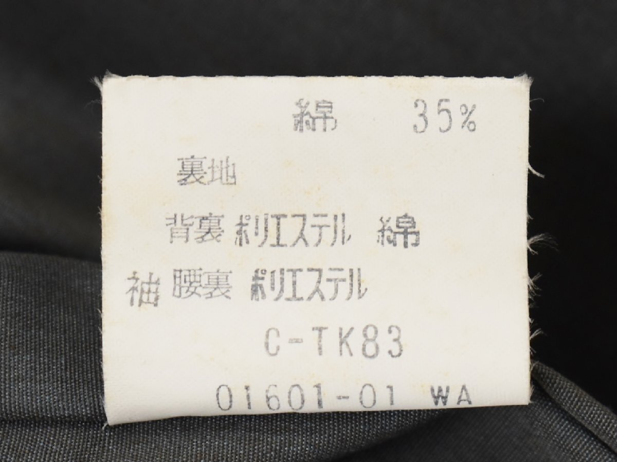 左袖口のボタンが割れており、タグにはシミ・右襟に汚れがあります。
