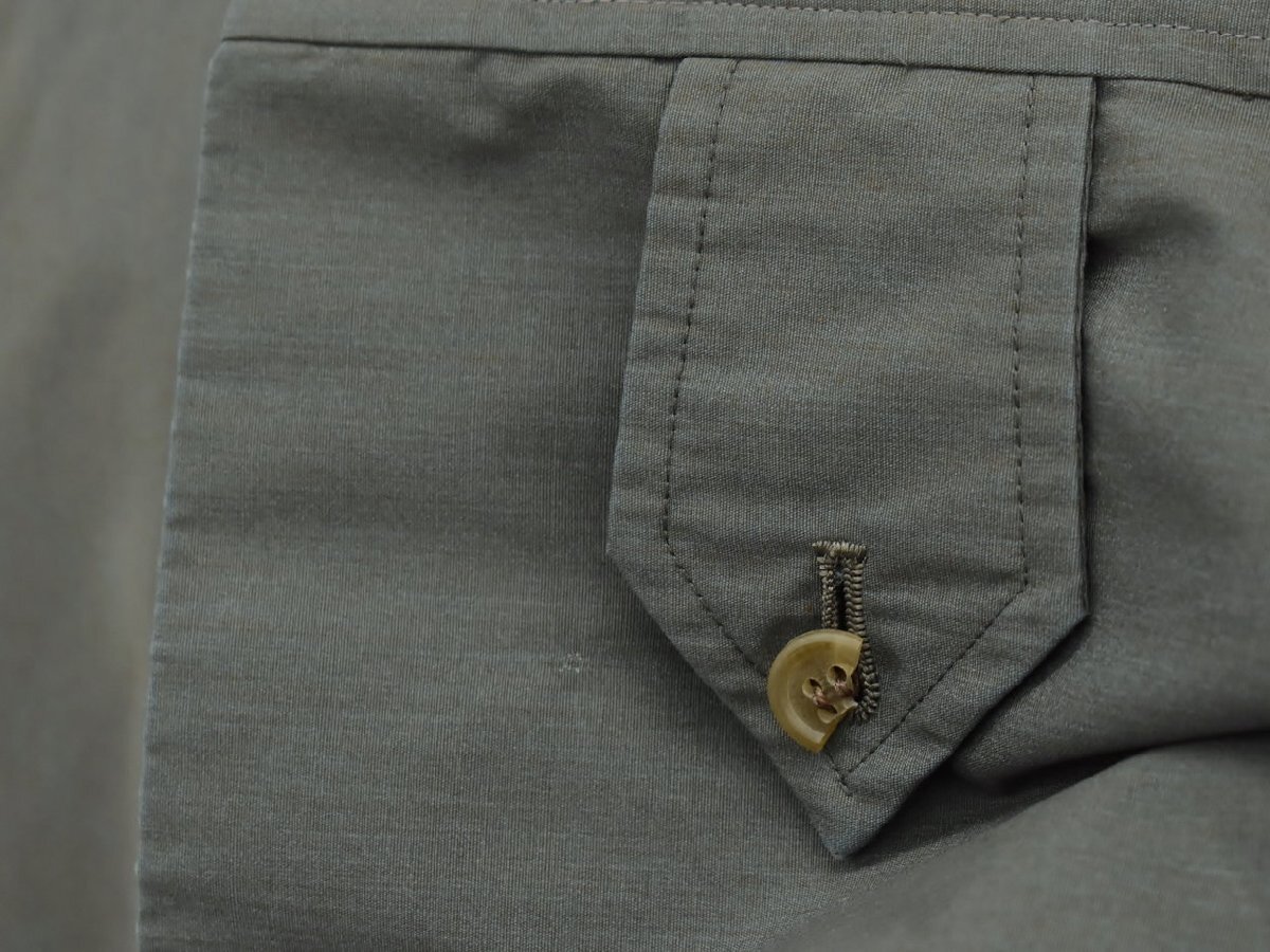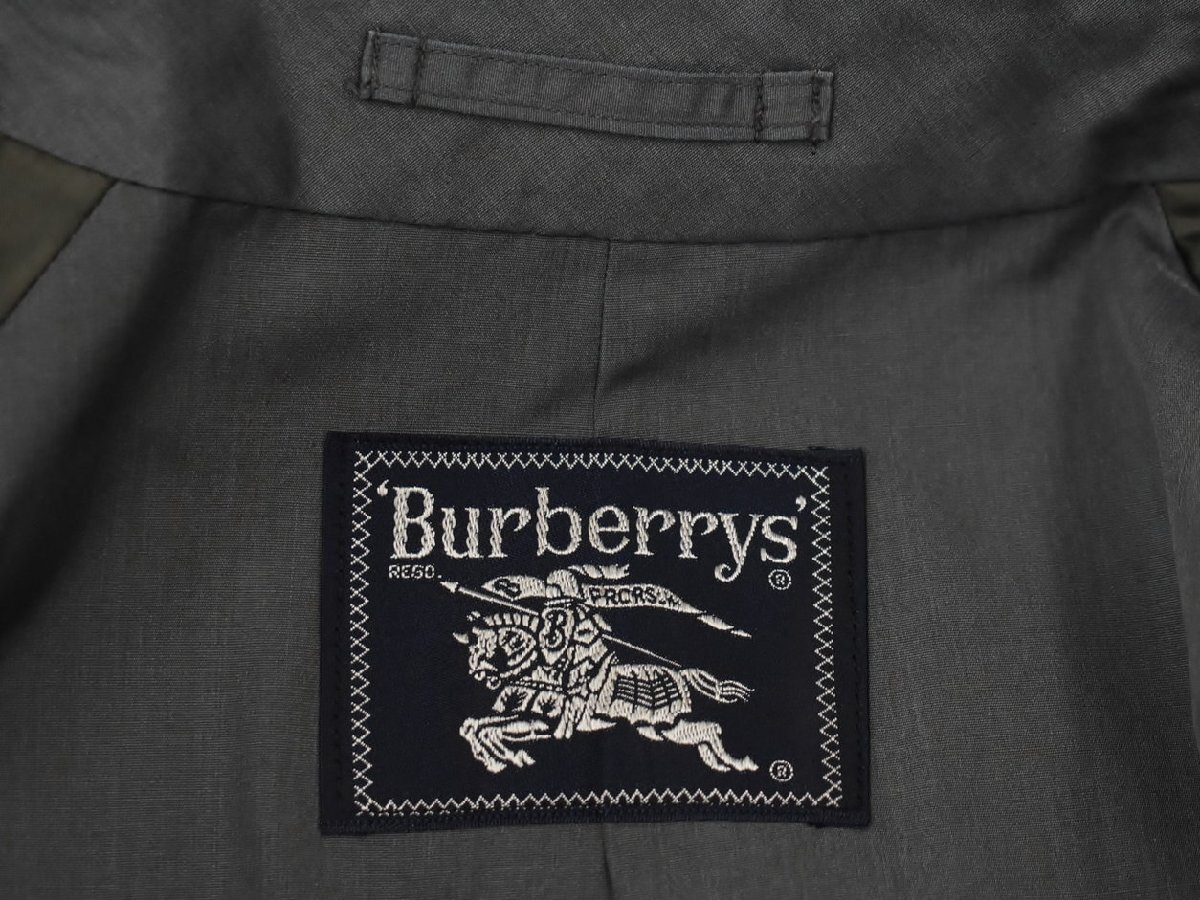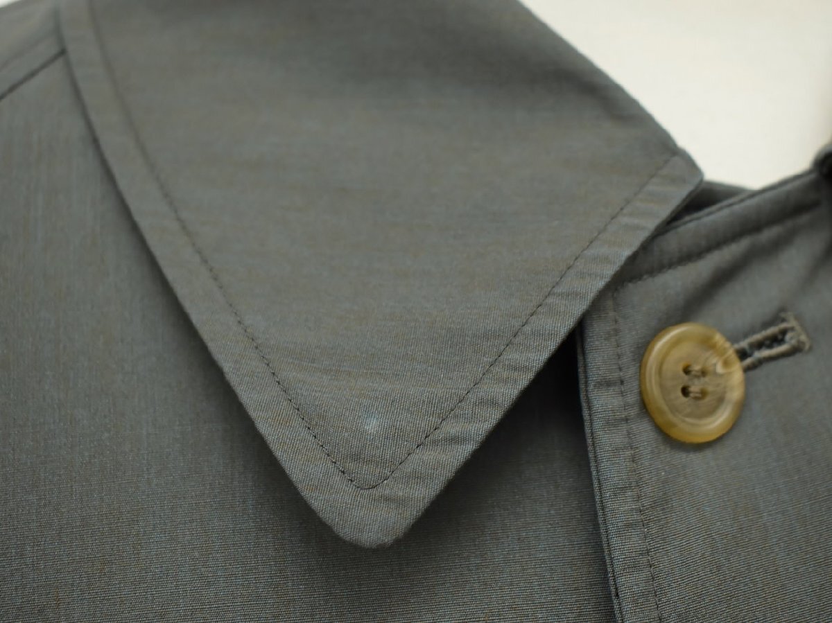 左袖口のボタンが割れており、タグにはシミ・右襟に汚れがあります。