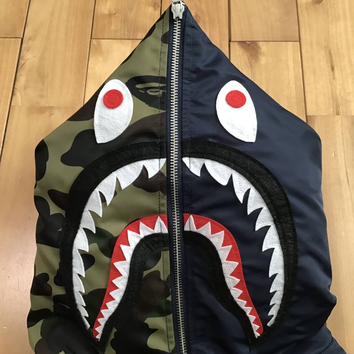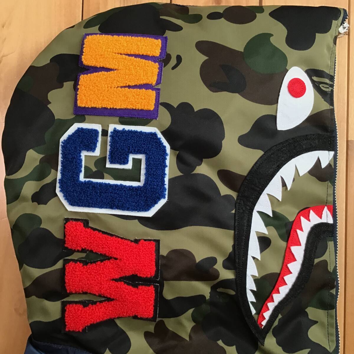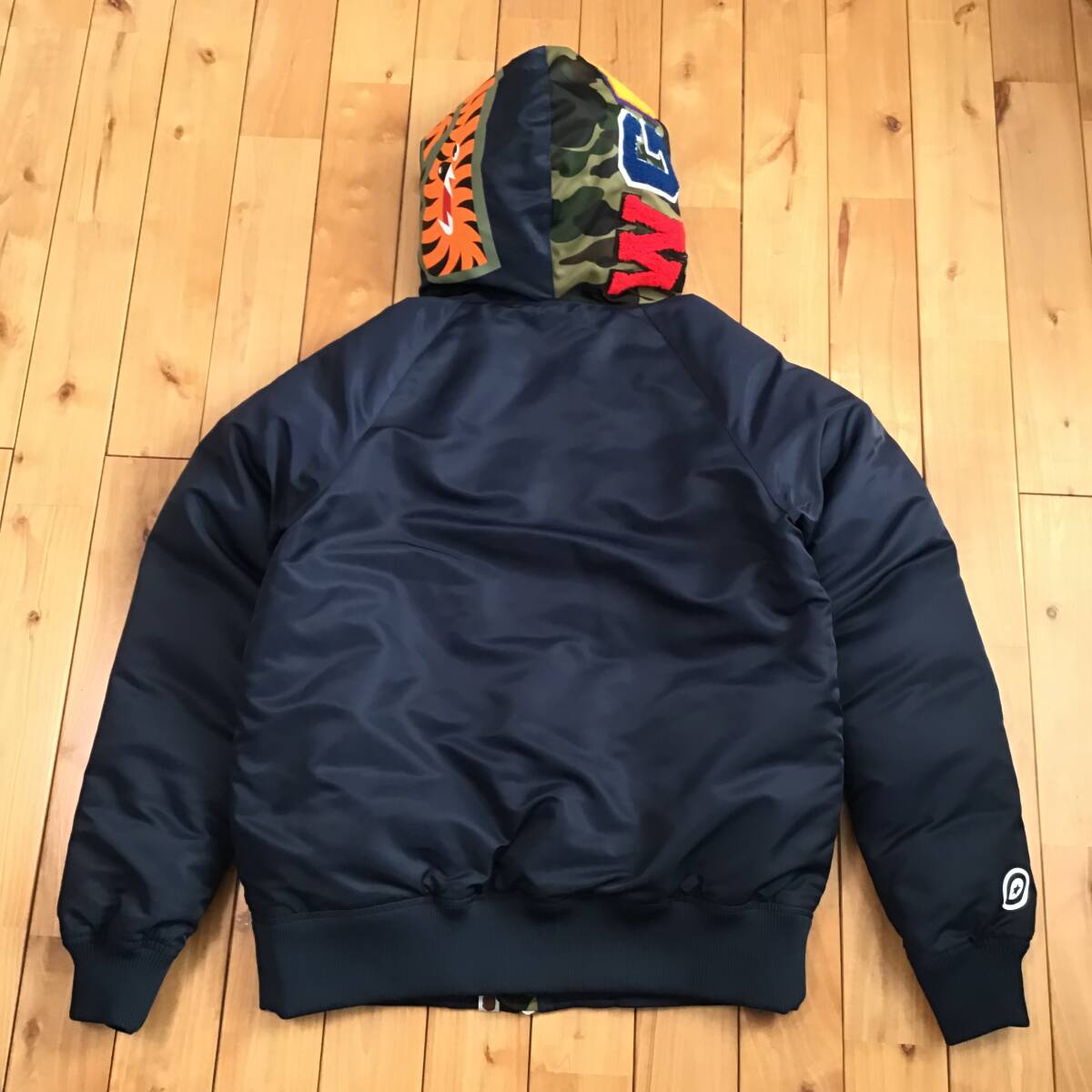 a bathing ape シャークパーカー ダウンジャケット ネイビー × 1st camo green Lサイズ です★