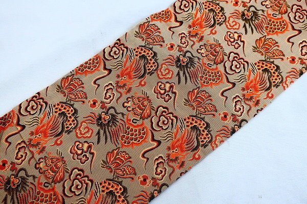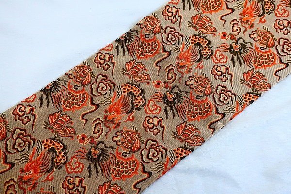 | 【着物フィ】未使用品 アンティーク 名古屋帯 ドラゴン 3m94cm 薄茶 大正ロマン レトロ お洒落 正絹 17707 |