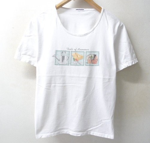 ◆ ◆アメリカ USA 古着 TOOLS of Summer フレームアートプリント Tシャツ 白 サイズS相当 タグ欠品
