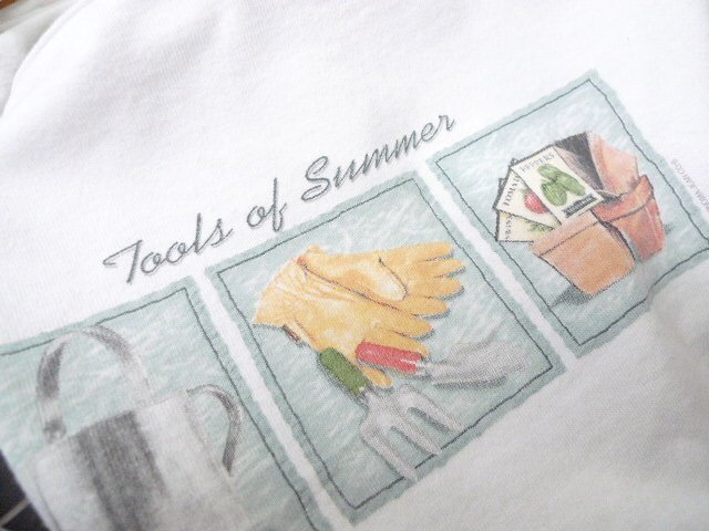 ◆アメリカ USA 古着 TOOLS of Summer フレームアートプリント Tシャツ 白 サイズS相当 タグ欠品