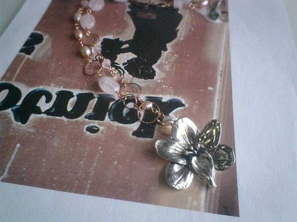 秋色アート・・シリーズです♪シックなピンクを集めて・・繊細なローズクォーツやモーヴピンクの淡水パールのネックレスです♪デザインリングチェーンやメタルフラワーを合わせてキュートな表情です♪ローズクォーツは5ミリから14ミリ位までのボタンカットやオーバルです♪淡水パールは5ミリ位のバロックです♪トップのメタルフラワーは35ミリ位です♪長さは全長83センチ位で調節自由です♪お揃いのブレスレットも出品しています♪シンプルで飽きのこないいつまでも着けられるデザインを考えて作りました!ハンドメイドをご理解頂いてノークレーム、ノーリターンでお願いします