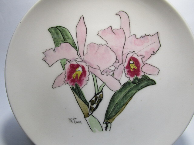 稀少アンティーク 美品★田村孝之介 カトレア 絵皿 飾り皿 ニュートーキョー 記念品 直径17cm 1枚★