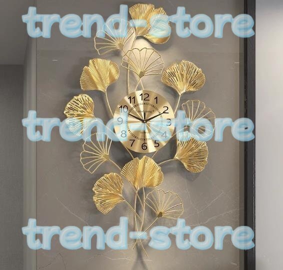 豪華 美品 銀杏 葉っぱ ゴールド デザイン 壁飾り 壁掛け時計 静音 電池式 家庭用 装飾